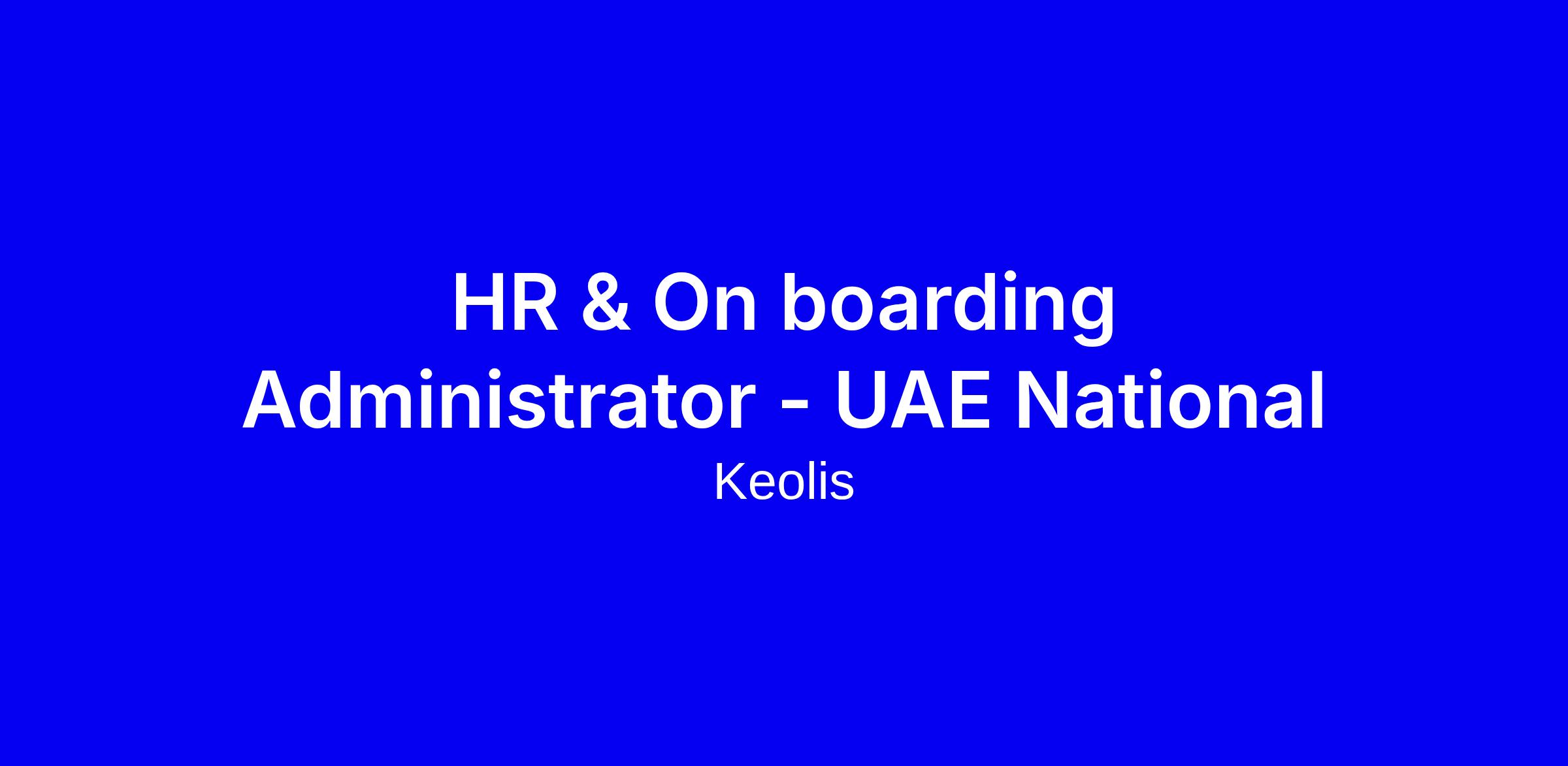 Keolis is seeking a UAE National HR and Onboarding Administrator to provide administrative support to the HR Delivery team and Keolis employees through visa processing, onboarding, induction, and transition activities. Responsibilities include managing onboarding packages, visa documentation, and handover to line managers; acting as the first point of contact; coordinating with PRO and banks for openings; ensuring payroll-ready documentation; supporting the induction program; and overseeing leavers processes and asset retrieval. The ideal candidate has at least three years’ experience in a fast paced multicultural environment, excellent discretion, strong written and spoken communication, solid organizational skills, and stakeholder management. UAE degree or diploma preferred. Tailor your CV to highlight onboarding, visa, PRO coordination, and measurable results.