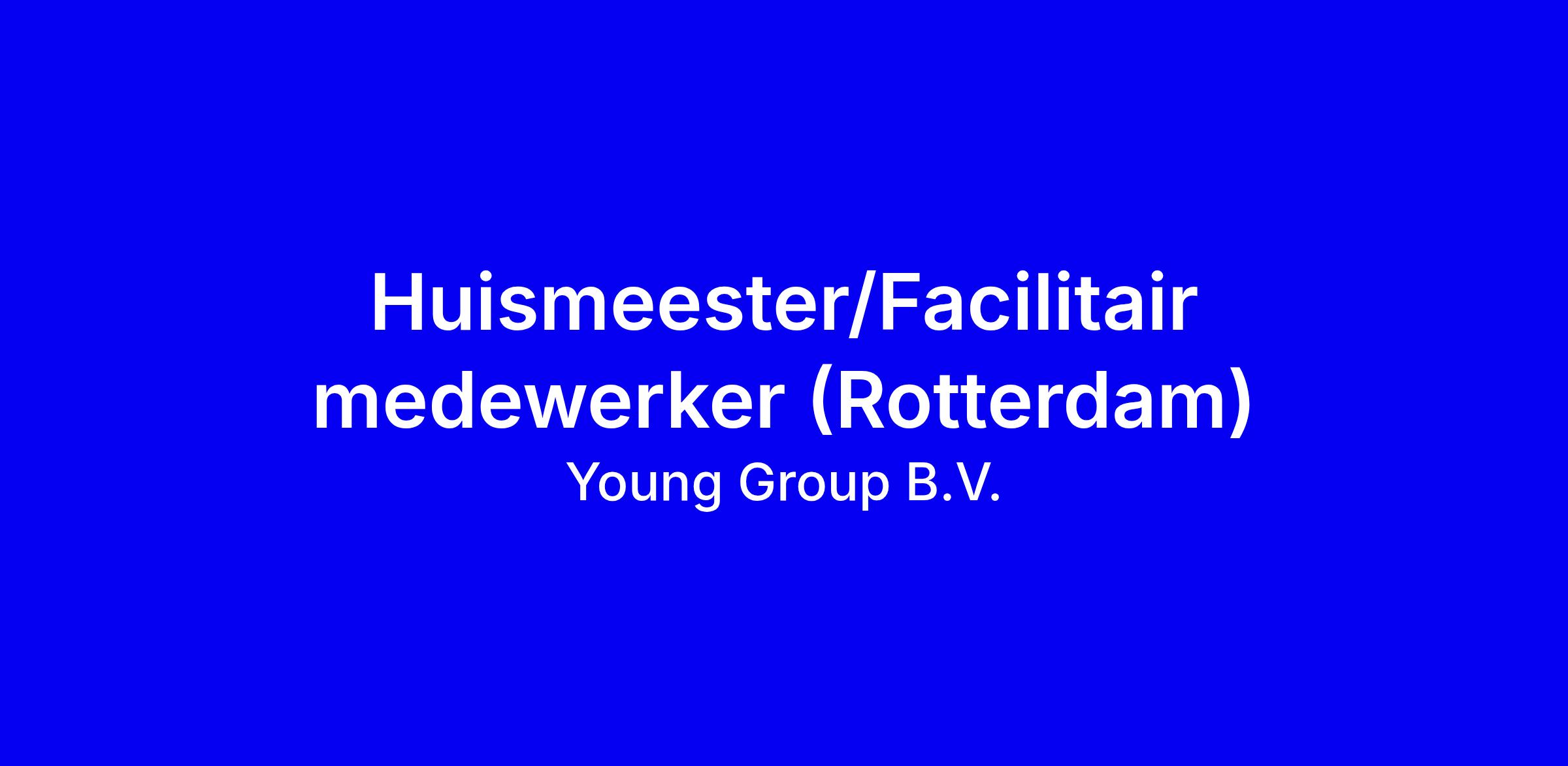 Young Group B.V. zoekt een enthousiaste huismeester/facilitair medewerker voor Rotterdam en mogelijk Den Haag-projecten, 24 tot 40 uur, tijdelijk 1 jaar met optie verlenging. Je bent de spil in gebouwbeheer bij woon- en kantoorpanden van woningcorporaties en VVE's, bewaakt veiligheid en hygiëne en signaleert technische mankementen. Roosters zitten ver van tevoren maar last minute wijzigingen horen erbij; er is ook de mogelijkheid op één locatie te werken. Belangrijk: reizen en schakelen tussen opdrachtgevers gaat je goed af. Vereisten: BHV en VCA Basis of bereid dit te halen, technische vaardigheden, communicatieve en sociale vaardigheden en ervaring is een pré. No-nonsense cultuur, korte lijnen, ontwikkelingsmogelijkheden en opleidingsbudget. Solliciteer direct met CV en motivatiebrief in het Nederlands; VOG verplicht.