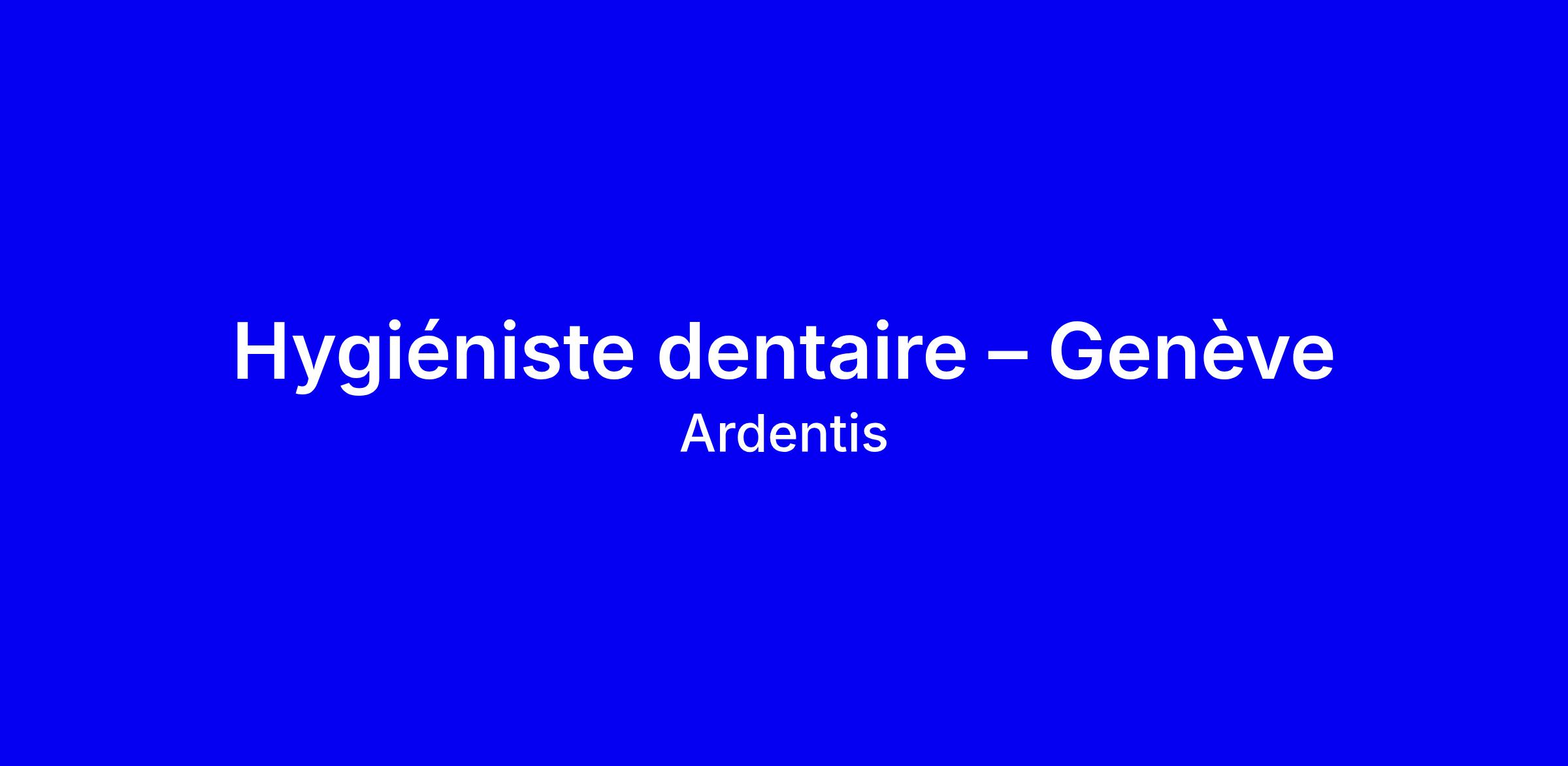 Avec Ardentis Genève nous recrutons un(e) Hygiéniste dentaire en CDD, 40% à 60%, entrée Mars 2026 ou à convenir, sur la Clinique de Genève, Rue Thomas-Masaryk 1. Exige: Diplôme d’hygiéniste dentaire suisse ou titre reconnu par la Croix-Rouge Suisse; présentation soignée, dynamisme, organisation et autonomie; sens du service et bonnes relations patient. Maîtrise des outils usuels (Word, Excel, Outlook) et du logiciel Dentagest; connaissance des tarifs et de la gestion des dossiers; français C1 avec DELF/DALF. Avantages: intégration personnalisée, environnement bienveillant, bonnes conditions et 5 semaines de congés. Pour postuler: adaptez votre CV et lettre, mettez en avant votre expérience Dentagest, votre esprit d’équipe et joignez le DELF/DALF.