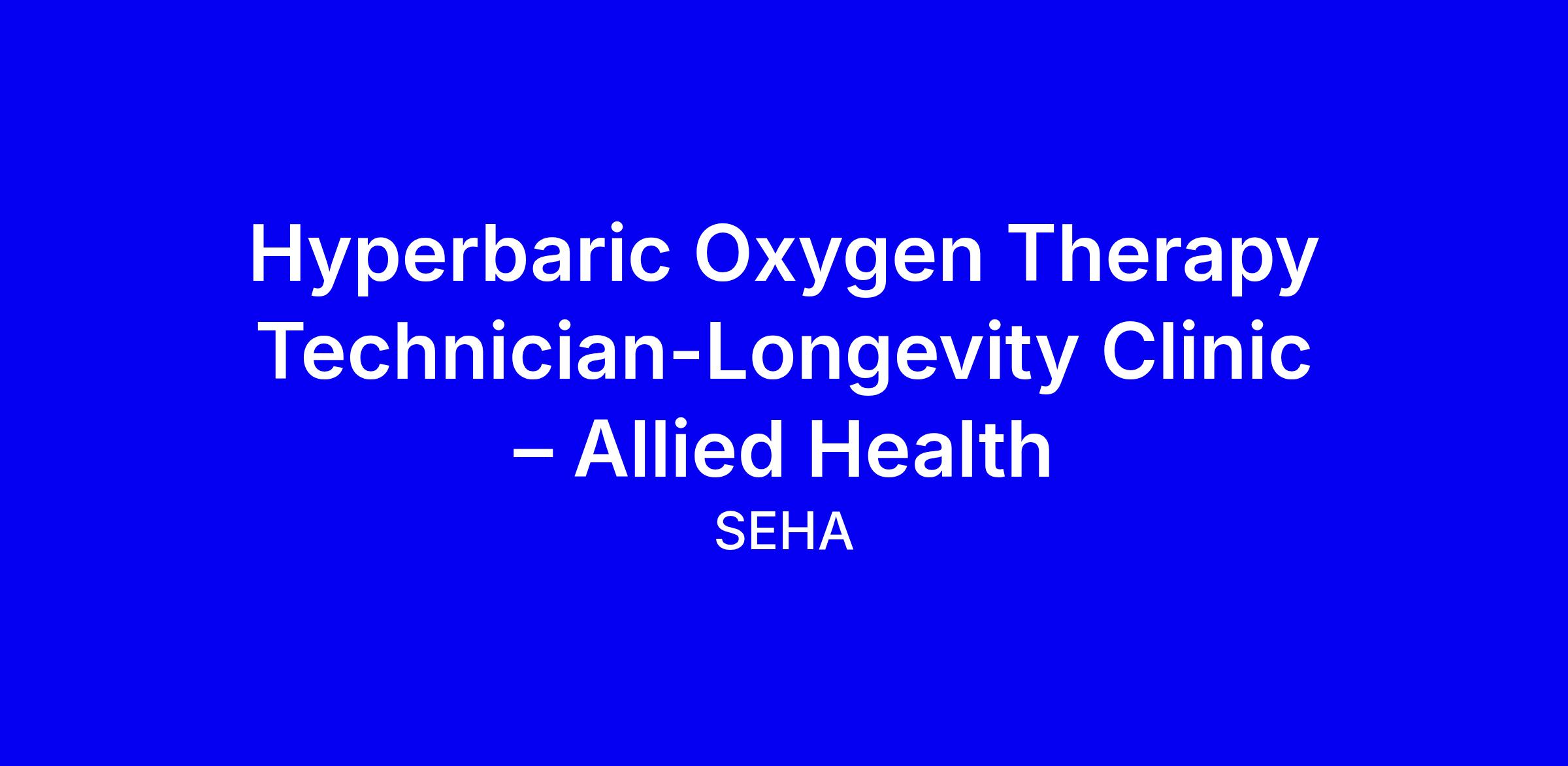 SEHA is seeking a full-time Hyperbaric Oxygen Therapy Technician for a longevity clinic in Abu Dhabi. The role centers on patient safety and comfort while operating HBOT chambers, documenting treatments, maintaining equipment, managing supplies, and collaborating with clinical teams to deliver safe, effective care. Key duties include patient preparation and education, continuous safety monitoring during sessions, accurate treatment documentation, and clear communication with patients and families about benefits and risks. Required qualifications include a high school diploma or GED, completion of an HBOT Safety Course, and current CHS or CHT certification or ability to obtain after hire; BLS required, ACLS preferred. Highlight HBOT experience, infection control, teamwork, and precise record keeping in your application.