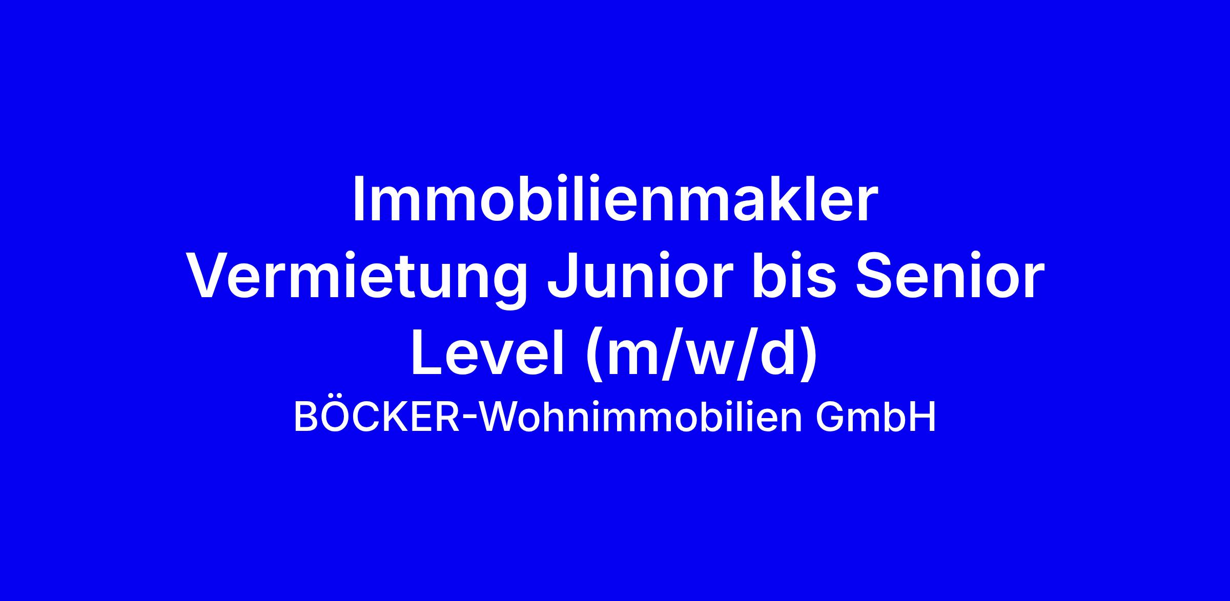 - Erfahrung: Berufserfahrung als Immobilienmakler/-in mit, vorzugsweise in der Vermietung von Wohnimmobilien.
