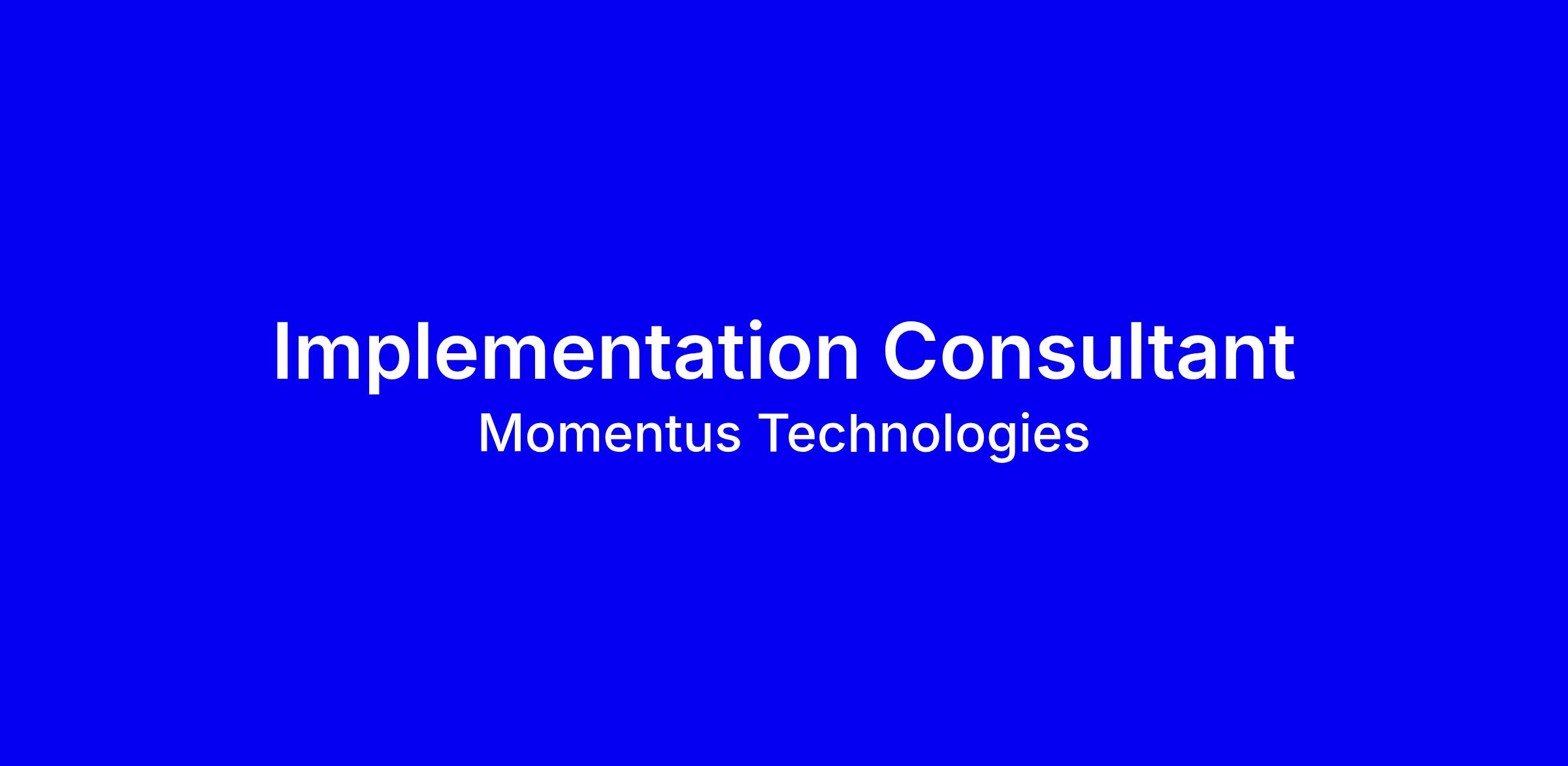 Implementation Consultants play a critical role at Momentus Technologies, helping to ensure the success of our customers by helping to demonstrate value of the platform and painting the vision of what's technically possible. They blend their technical abilities and deep product knowledge with strong storytelling skills as they partner with customers externally and customer-facing teams internally to drive long-lasting impact and customer retention.