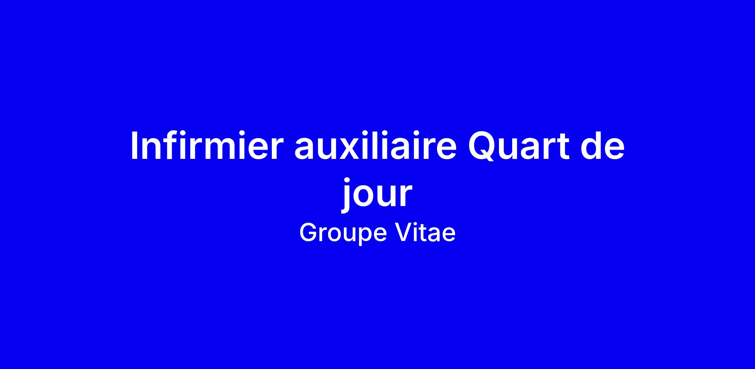 Le poste d infirmier auxiliaire au Quart de jour, à la Résidence Calla, est un poste permanent à temps plein à Québec, au Groupe Vitae. Vous soutiendrez les équipes sur les unités pour assurer des soins de qualité, la sécurité et les opérations, sous la supervision de la directrice des soins infirmiers. Principales responsabilités: soins et suivi clinique, transmissions et tâches administratives, soutien lors de remplacements; quarts jour, une fin de semaine sur deux, salaire de 24,97 à 30,26 $/h selon l’expérience. On cherche flexibilité, leadership positif, autonomie et discrétion; expérience en RPA/geriatrique cognition et membre de l’OIIAQ exigé. Postulez en démontrant votre capacité à vous adapter rapidement et votre motivation pour Calla et Groupe Vitae.