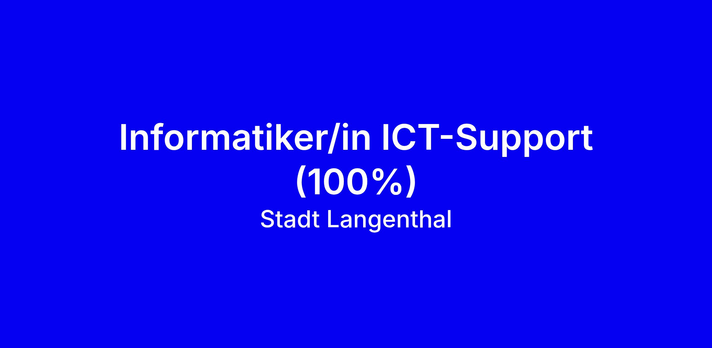 Die Stadt Langenthal sucht einen Informatiker/in ICT-Support (100%) zur Ergänzung des Informatik Service Centers. Die Stelle ist vollzeit, onsite, mit Start ab 1. Mai 2026 oder nach Vereinbarung. Zu Ihren Aufgaben gehören 1st- und 2nd-Level-Support, interne Schulungen der User, Administration und Monitoring der ICT-Infrastruktur, Planung von Tests sowie Begleitung von Inbetriebnahmen und Mitarbeit in IT-Projekten. Sie bringen eine fundierte IT-Ausbildung, Kenntnisse im Microsoft-Umfeld und Erfahrung in heterogenen Infrastrukturumgebungen mit, arbeiten selbständig, strukturiert und pragmatisch und kommunizieren lösungsorientiert. Wir bieten ein motiviertes Team, flexibles Arbeitsmodell mit Homeoffice, Weiterbildung, zentrale Lage, gute Sozialleistungen und 16 Wochen Mutterschaftsurlaub. Fragen an Aris Zemp Tel. 062 916 23 00 oder online bewerben unter www.langenthal.ch.