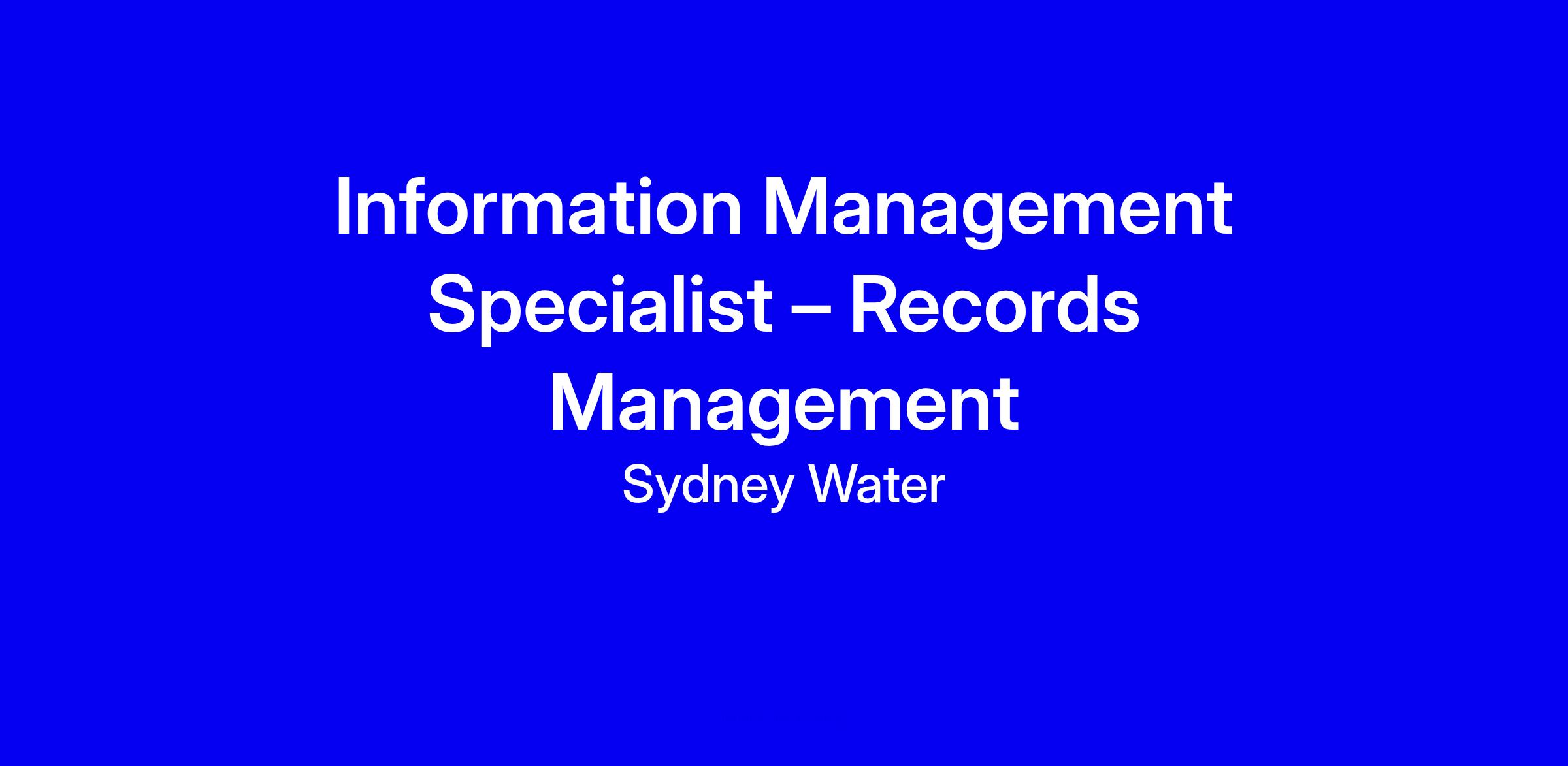 The Information Management Specialist – Records Management is part of the Information Management Centre (IMC) team and plays a critical role in enhancing Sydney Water’s information and records management practices.