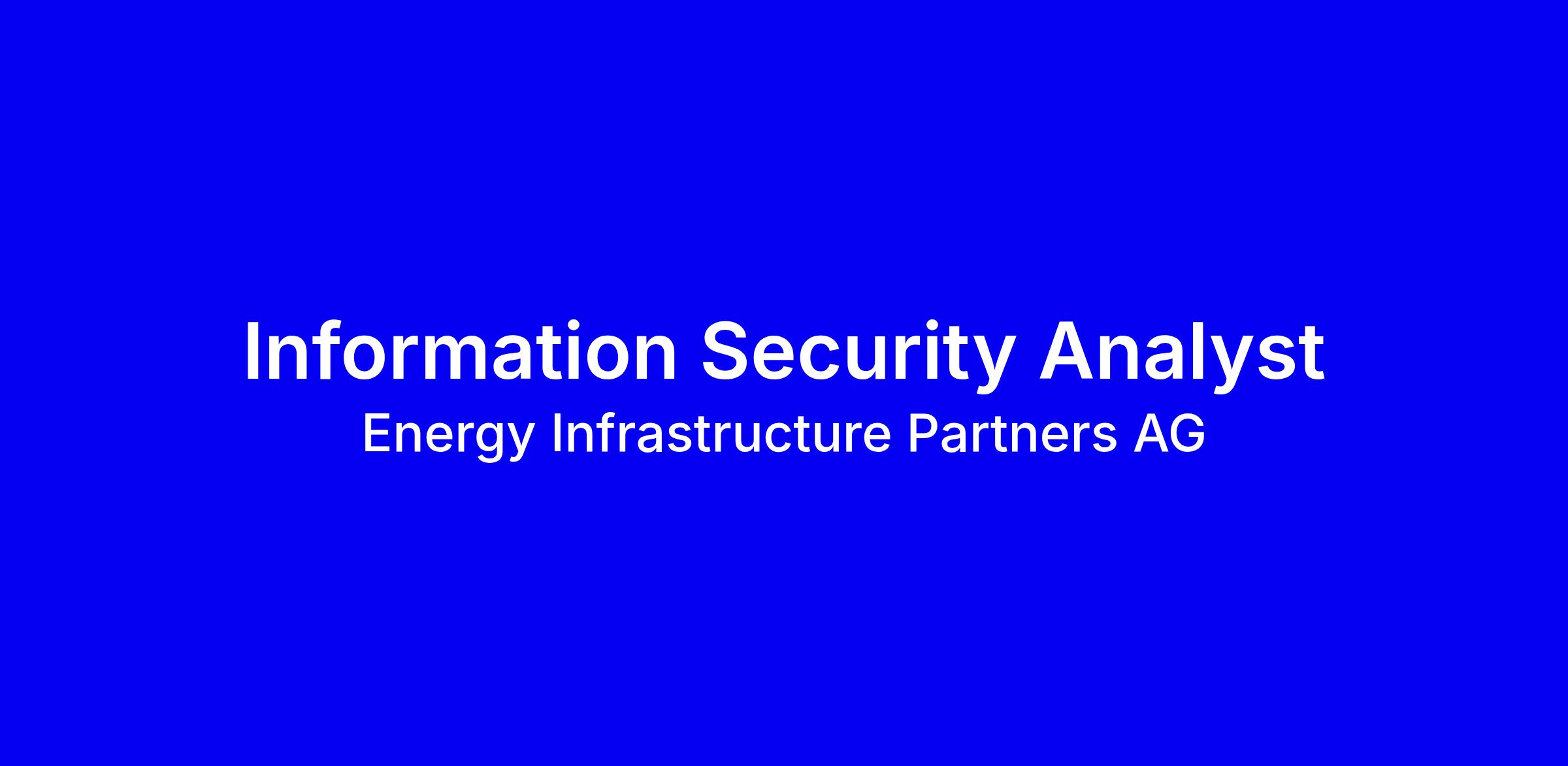 Energy Infrastructure Partners AG seeks an Information Security Analyst in Zürich, full-time onsite, to own the ISMS, risk register and controls, lead risk assessments and reviews, coordinate security operations with an outsourced SOC/CISO, run tabletop exercises and maintain the IR plan, and bolster platform security across Microsoft 365, Entra ID, Defender, Purview and Sentinel while managing third party risk, data protection and DPA processes. You will support audits, deliver training, and produce monthly security dashboards. The ideal candidate has 5+ years in information security, ISO 27001 experience, incident response skills, MS 365/Azure expertise, GDPR familiarity, and relevant certifications; English required, German a plus, PowerShell/KQL scripting. Apply via our job platform only; no email attachments.