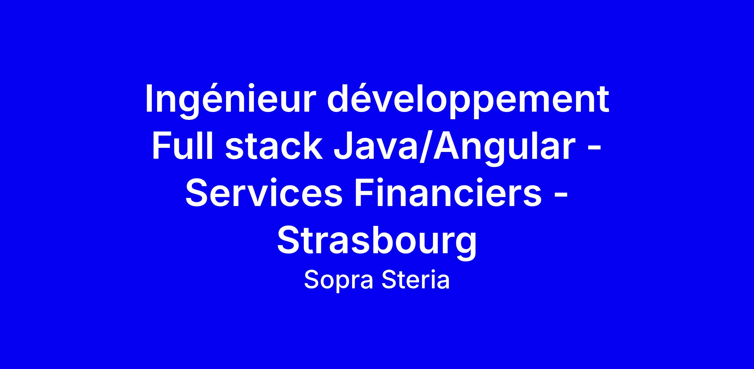 Cette offre de Sopra Steria recrute un ingénieur développement Full stack Java Angular pour le centre de service d’un grand client bancaire à Schiltigheim, dans une équipe agile dynamique. Vous développerez le FrontEnd ou le BackEnd, participerez à l’analyse des besoins et au bon fonctionnement du projet, et communiquerez régulièrement avec les équipes du client, tout en vous impliquant dans les processus d’intégration continue et d’amélioration. Profil recherché : au moins 5 ans d’expérience Java et Angular, diplôme d’ingénieur ou Master 2 en informatique, esprit analytique, appétence banking, et capacité à jongler entre plusieurs actions quotidiennes. Avantages : télétravail jusqu’à 2 jours, mutuelle, titres restaurants, mentorat et formations. Pour candidater, adaptez votre CV à ces technologies et illustrez vos réalisations agiles et orientées client.