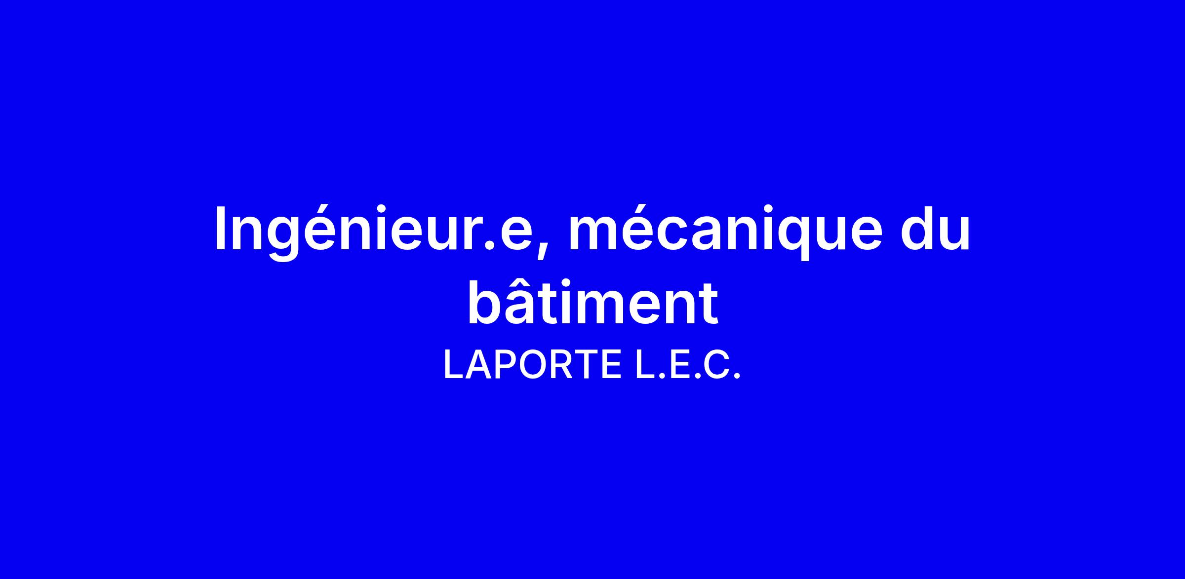 LAPORTE recherche un.e ingénieur.e mécanique du bâtiment ayant idéalement de 2 à 5 ans d’expérience pertinente pour rejoindre son équipe à Québec. Notre ingénieur.e participera à la conception à la réalisation de projets complexes dans les secteurs pharmaceutique, biotechnologique et alimentaire.