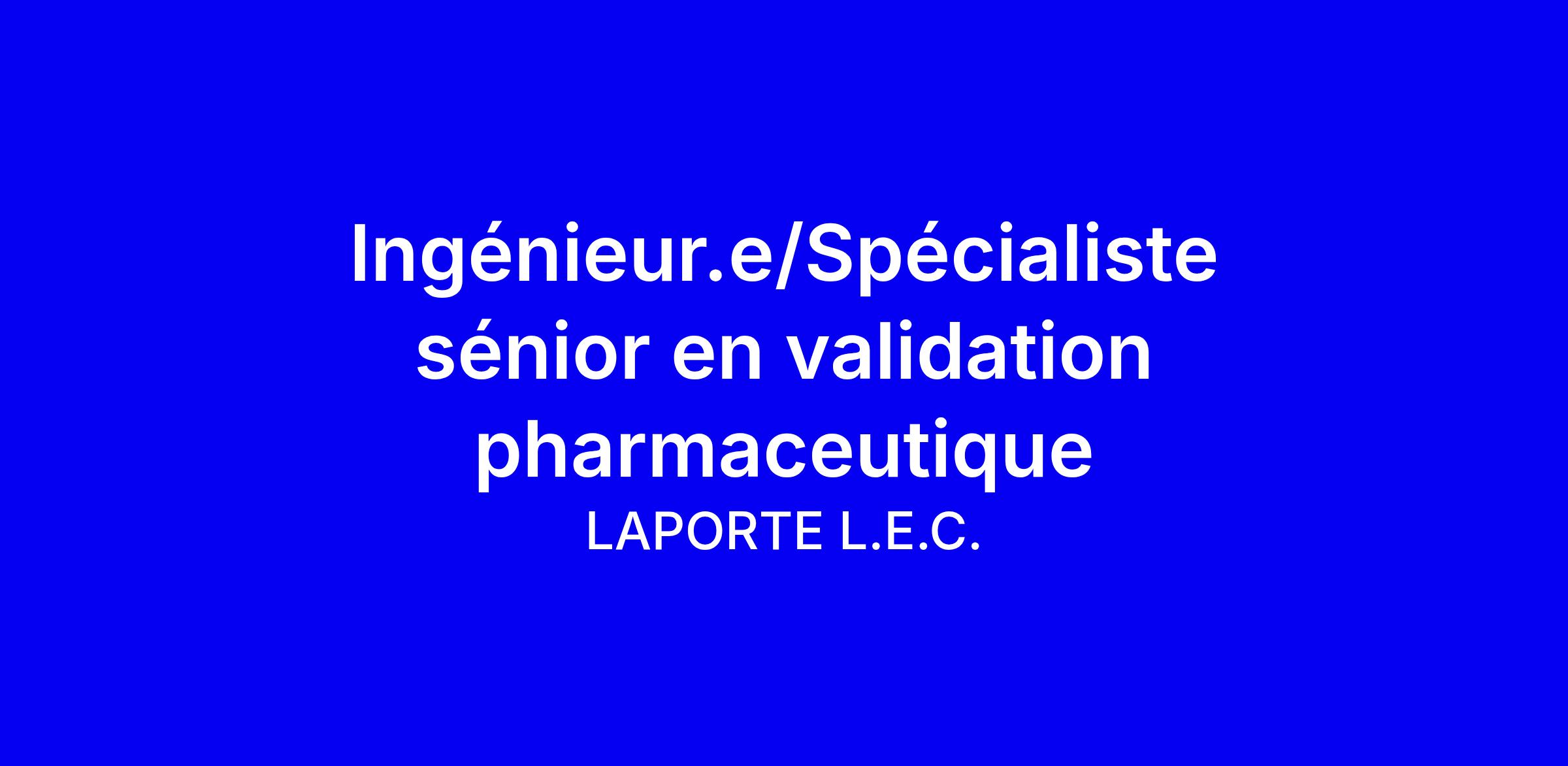 LAPORTE recherche un.e ingénieur.e ou spécialiste en validation pharmaceutique sénior ayant idéalement au moins 5 ans d’expérience en validation et qualification d’équipements pharmaceutiques pour rejoindre son équipe du grand Montréal. Notre ingénieur.e en validation jouera un rôle clé dans la gestion des activités de validation, incluant la rédaction de documents maîtres, l’exécution de protocoles et le suivi des Bonnes Pratiques de Fabrication (BPF).