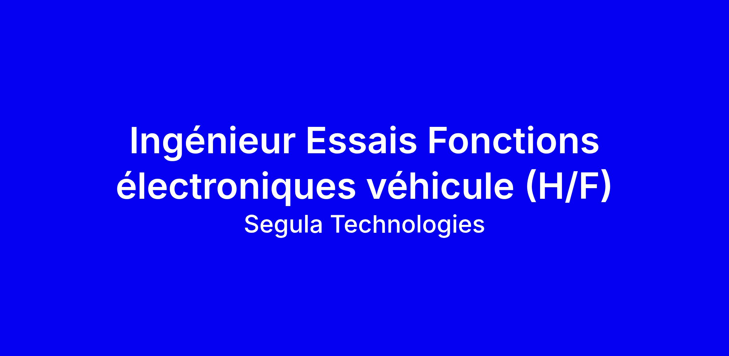 Segula Technologies recherche un Ingénieur Essais Fonctions Électroniques véhicule pour piloter les essais de prototypes sur site à Cholet, dans le secteur du Véhicule Industriel. Vous concevez et adaptez les bancs et supports d’essais, définissez les plans et cas de tests, analysez les demandes et suivez les campagnes jusqu’au reporting et à la mise en œuvre des actions correctives, en participant à l’amélioration des méthodes. Le candidat idéal a au moins 3 ans d’expérience en développement et essais de systèmes de supervision sur véhicules, maîtrise HIL (CANoe + VT System, dSPACE SCALEXIO), et les outils CAN et Matlab/Simulink, CAPL, C, C++, avec anglais courant et disponibilité pour des déplacements. Pour postuler, privilégiez les exemples concrets, valorisez vos résultats et votre esprit méthodique.