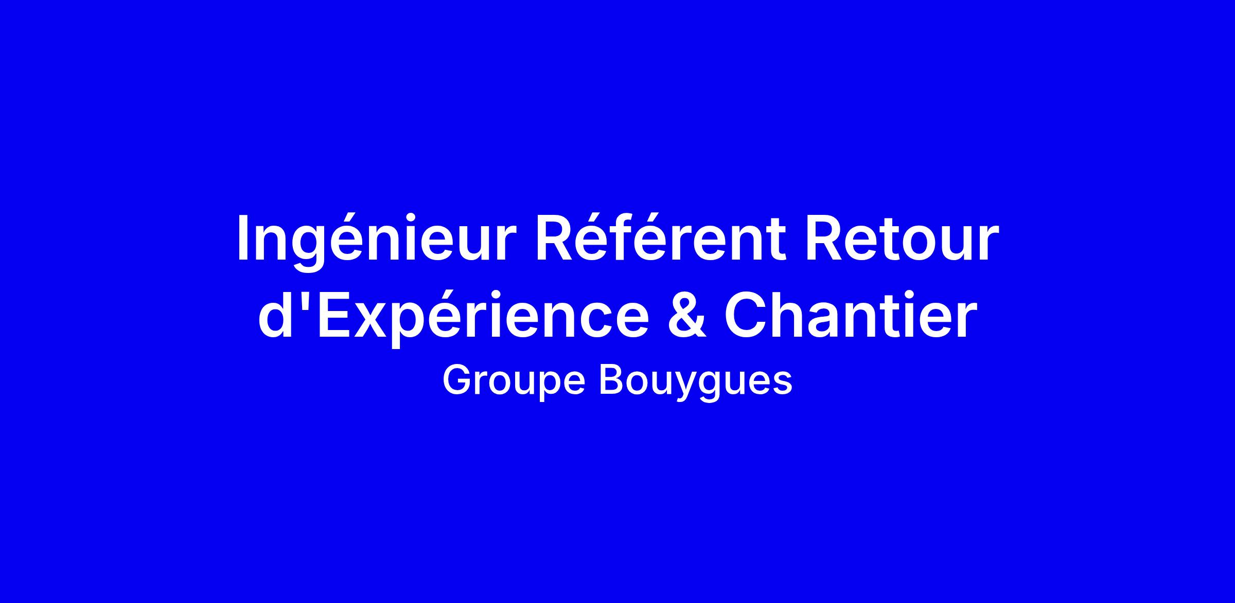 Ce CDI chez Bouygues Travaux Publics vise le poste d’Ingénieur Référent Retour d Expérience et Chantier, mission de fluidifier la collecte, la production et l exploitation des retours d expérience sur les chantiers en France et à l international. Le candidat idéal est ingénieur en génie civil ou travaux souterrains, avec une expérience internationale, de solides qualités relationnelles et une aptitude avérée à piloter la capitalisation, la validation des REX et l animation d une communauté de praticiens. Maîtrise d Excel, Word, PowerPoint et anglais exigée, mobilité fréquente, esprit d initiative et autonomie. Pour postuler, adaptez votre CV et lettre en valorisant vos réalisations REX et contactez [email protected].