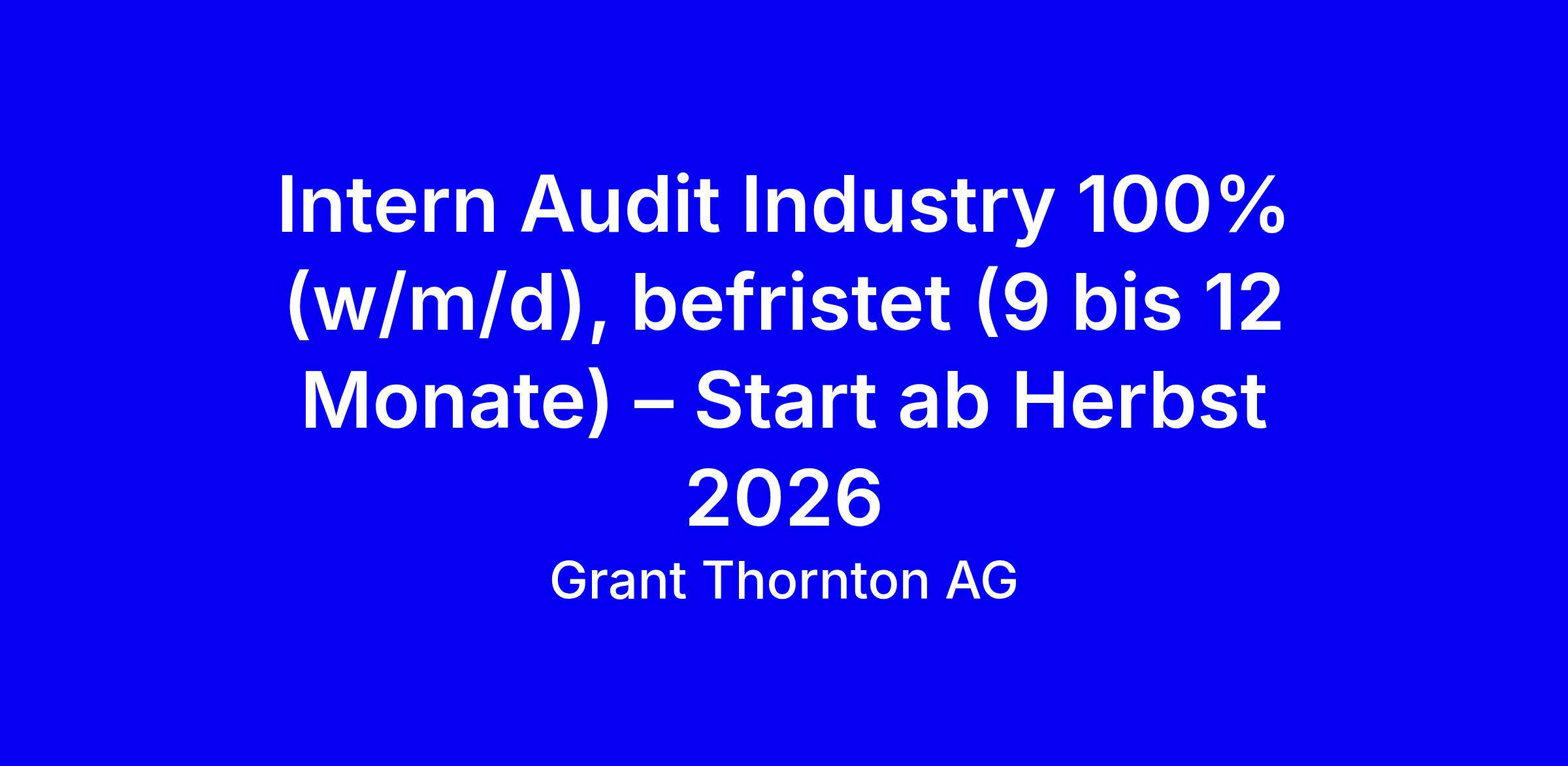 Grant Thornton Schweiz sucht ab Herbst 2026 für 9 bis 12 Monate in Zürich eine/n Intern Audit Industry 100% (w/m/d). Die Stelle richtet sich an Bachelor- oder Masterstudierende (vorzugsweise BWL) mit Zwischenjahr und idealerweise bereits erste Berufserfahrung im Finanzbereich. Du prüfst Jahres- und Konzernabschlüsse, bewertest Geschäftsprozesse und arbeitest branchenübergreifend mit Kunden aus Produktion, Handel, Chemie, Technologie, e-Commerce und mehr; interne Projekte ergänzen dein Aufgabenspektrum. Wichtige Stärken sind Zahlenaffinität, analytisches Denkvermögen, strukturierte Arbeitsweise und Eigeninitiative; gute IT-Kenntnisse (Excel/PowerPoint) sowie Deutsch- und Englischkenntnisse sind gefordert. Tipps: betone relevante Kurse/Praktika, liefere konkrete Beispiele für Datenanalyse, zeige Lernbereitschaft und Teamfähigkeit, bewerben über den angegebenen Link.