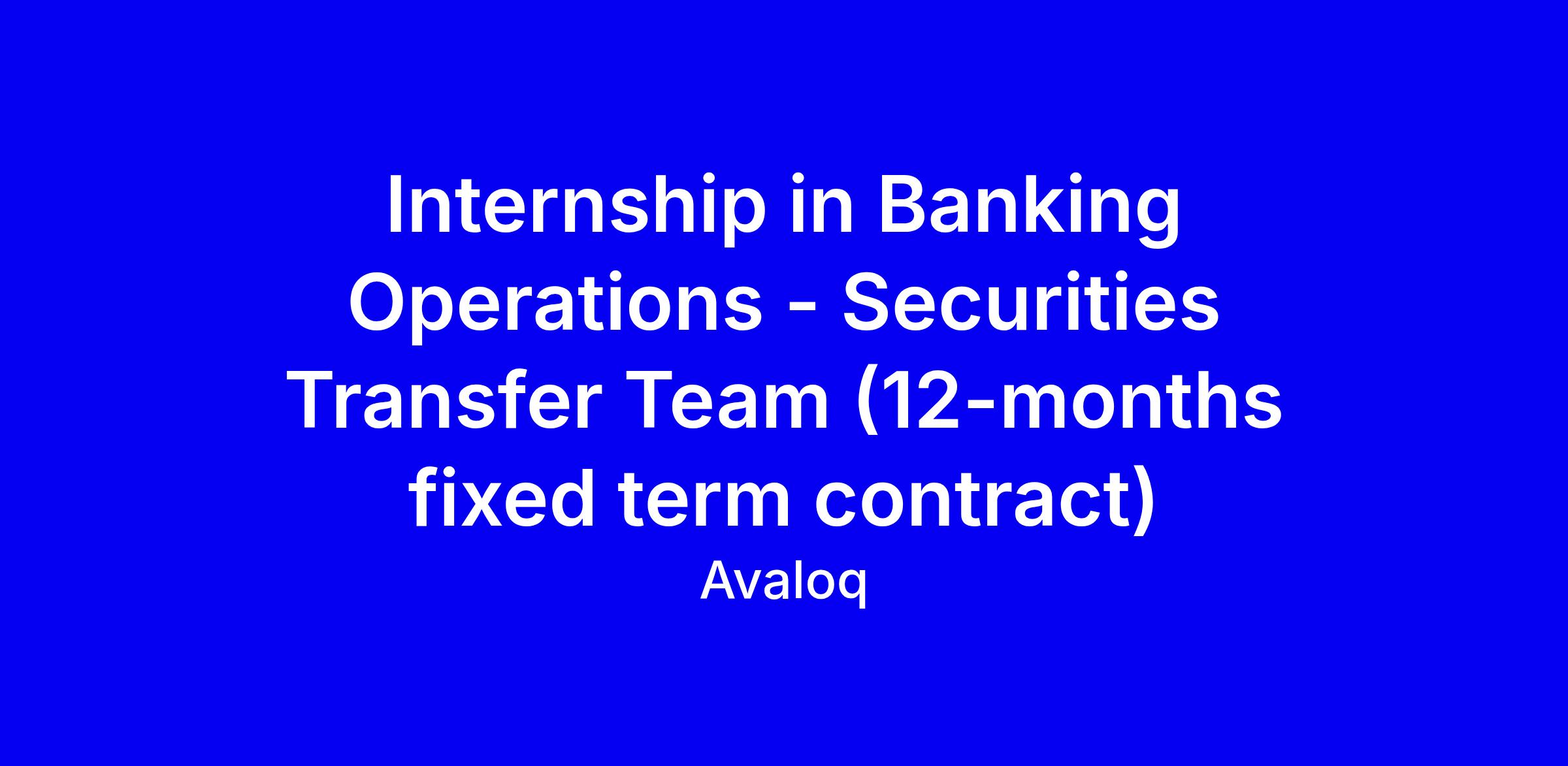 Avaloq is offering a 12-month internship in Banking Operations within the Securities Transfer Team, based onsite in Bioggio, Ticino, with a global footprint across Germany, Switzerland and Singapore. You will support processing securities transfers and realignments, coordinate with clients and custodians, and perform cash and security reconciliations to ensure timely settlements while meeting SLA and KPI targets. The role benefits from any securities transfer or settlement experience and skills in Avaloq Banking Suite, Clearstream Vestima, SWIFT, Bloomberg, plus strong Excel and communication in English and German. To apply, tailor your CV to highlight relevant projects, regulatory awareness, and a proactive service mindset, and align with Avaloq’s hybrid, inclusive culture.