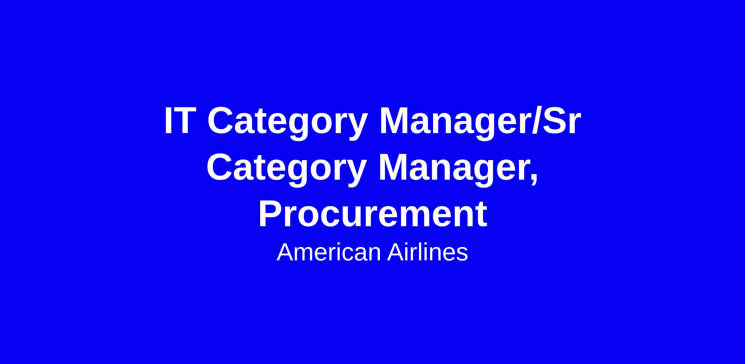 American Airlines seeks an IT Category Manager or Senior Category Manager to lead technology spend across software, SaaS, hardware, telecom, cloud and related services. You’ll develop strategic programs, manage the supplier lifecycle, negotiate term contracts, and drive year over year cost reductions. You’ll partner with internal customers, Legal and Sourcing, lead supplier reviews and risk assessments, and build strong supplier partnerships. Ideal candidates hold a bachelor’s degree with 3-5+ years in procurement or supply chain, plus strong negotiation, project management and Source to Pay experience. To apply, tailor your résumé to quantify cost savings and governance outcomes, show stakeholder results, and highlight alignment with American’s inclusive culture and travel benefits.