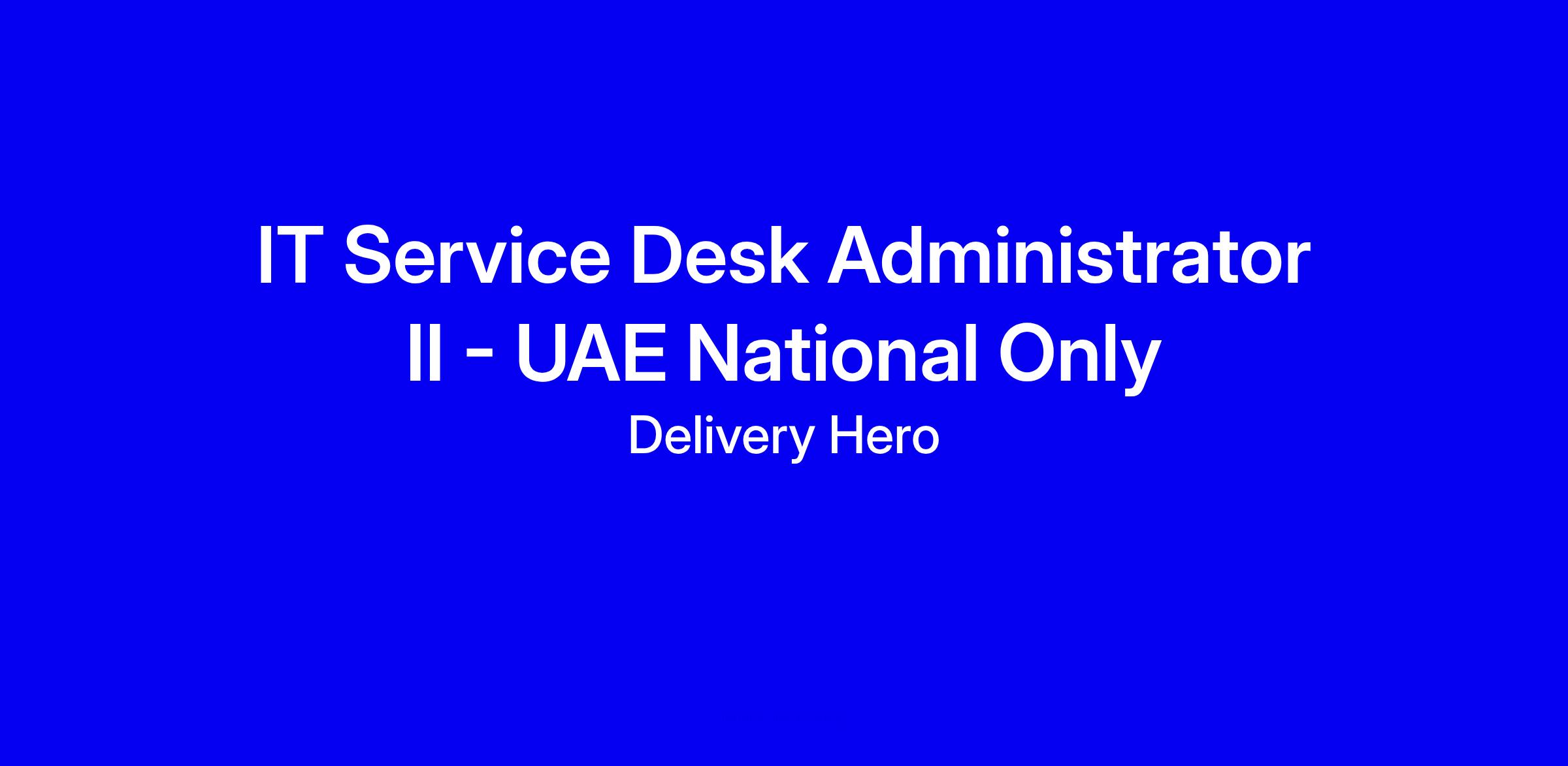 Delivery Hero talabat is hiring a UAE National Only IT Service Desk Administrator II to work full time onsite in Dubai. As the first point of contact for IT requests you will handle tickets, support Windows and macOS devices, administer Google Workspace, perform basic network tasks, assist with onboarding, manage asset inventory, support AV equipment, and maintain knowledge documentation. Fresh graduates are welcome; 1 to 2 years in IT support is preferred. Key traits include strong customer service, problem solving, multitasking in a fast paced environment, and flexibility for shifts. To apply, tailor your resume to highlight Windows/macOS troubleshooting, Google Workspace administration, networking basics, Office 365, asset management, onboarding, and security policy compliance, and confirm your UAE national eligibility and onsite availability.