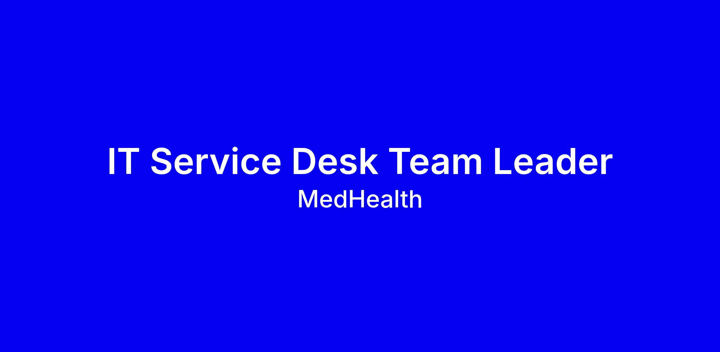 Are you passionate about delivering outstanding customer service and leading high‑performing teams? MedHealth is seeking an experienced Service Desk Team Leader to guide our frontline IT support function and ensure a seamless technology experience for our people.