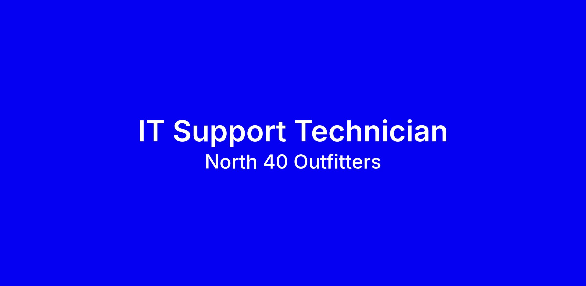 Are you an analytical and dependable individual with a passion for Information Technology? North 40 Outfitters is looking for an experienced I.T. Support Technician to join their IT team to support our retail stores. As one of our Support Technicians, you would be the first point of contact for the I.T. Department and would be responsible for assisting customers and employees troubleshoot and resolve I.T. issues. If you are committed to working cooperatively with others while focusing on the details, we want to talk to you! This position requires excellent customer service skills, the ability to communicate effectively via phone and email, and the ability to provide technical support to users in an efficient and accurate manner.