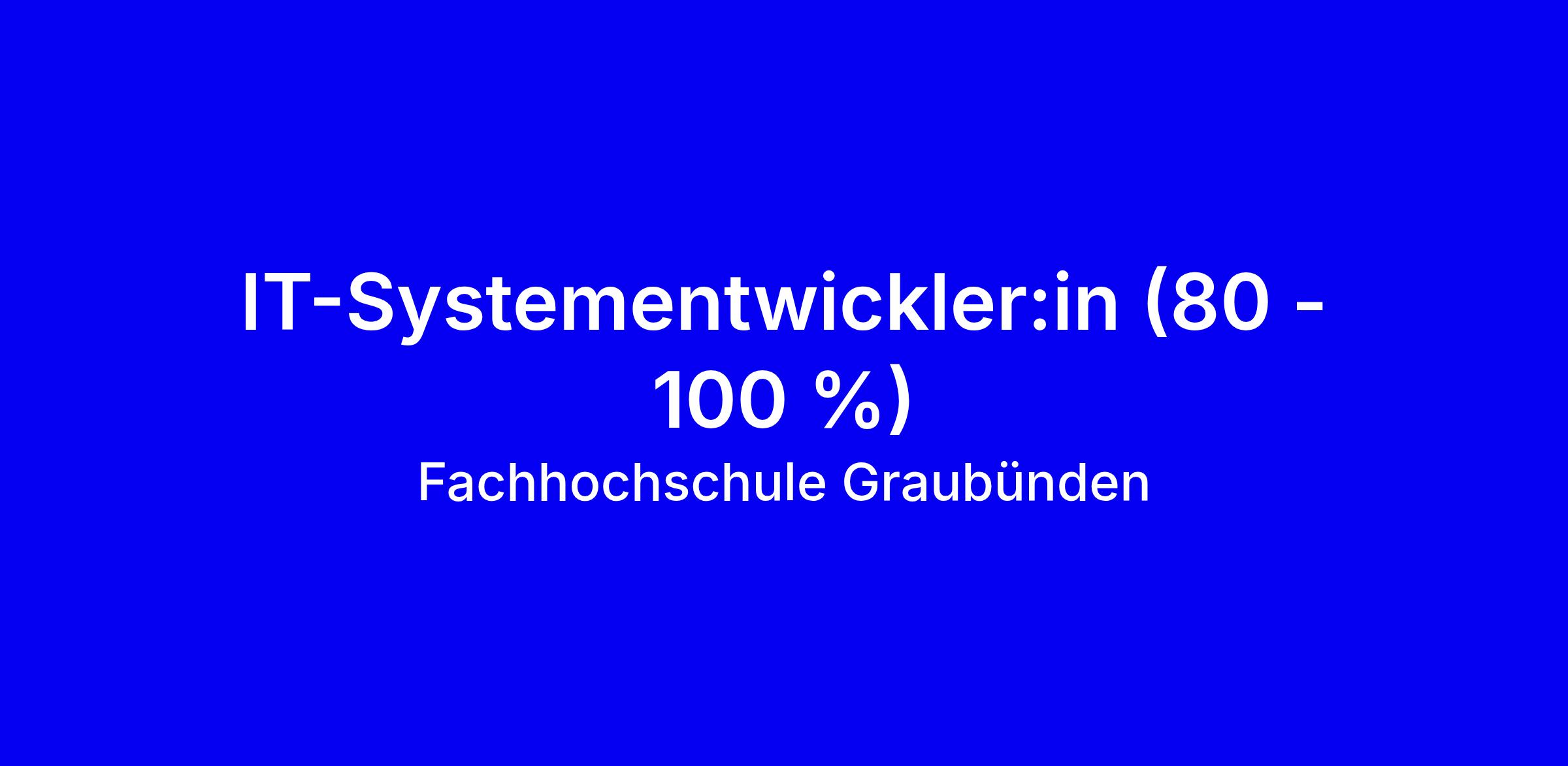Die FH Graubünden sucht eine:n IT-Systementwickler:in (80 100 %) im Bereich Business Applications am Standort Chur onsite, Start 1. März 2026 oder nach Vereinbarung. In dieser Rolle arbeiten Sie aktiv in IT-Projekten von der Anforderung bis zum Betrieb, analysieren Geschäftsprozesse, identifizieren Optimierungs- und Digitalisierungspotenziale und setzen diese gemeinsam mit dem IT-Team um. Sie tragen zur Weiterentwicklung der Systemlandschaft bei, übersetzen Business-Anforderungen in technische Lösungen, unterstützen Tests, Dokumentationen und Rollouts und sichern den stabilen Betrieb der Anwendungen. Gefragt sind eine abgeschlossene Ausbildung oder ein Hochschulabschluss in Informatik oder Wirtschaftsinformatik, praktische Kenntnisse in PHP/JavaScript/HTML/CSS (TYPO3) oder Java (Spring Boot), ServiceNow und SQL, gute Deutschkenntnisse, Englisch vorteilhaft. Wir bieten abwechslungsreiche Projekte, ein kleines kollegiales Team, Entwicklungspotenziale, moderne Anstellungsbedingungen und Sport- sowie Kulturangebote. Online bewerben, bei Fragen an Christian Giger Tel. +41 81 286 24 95.