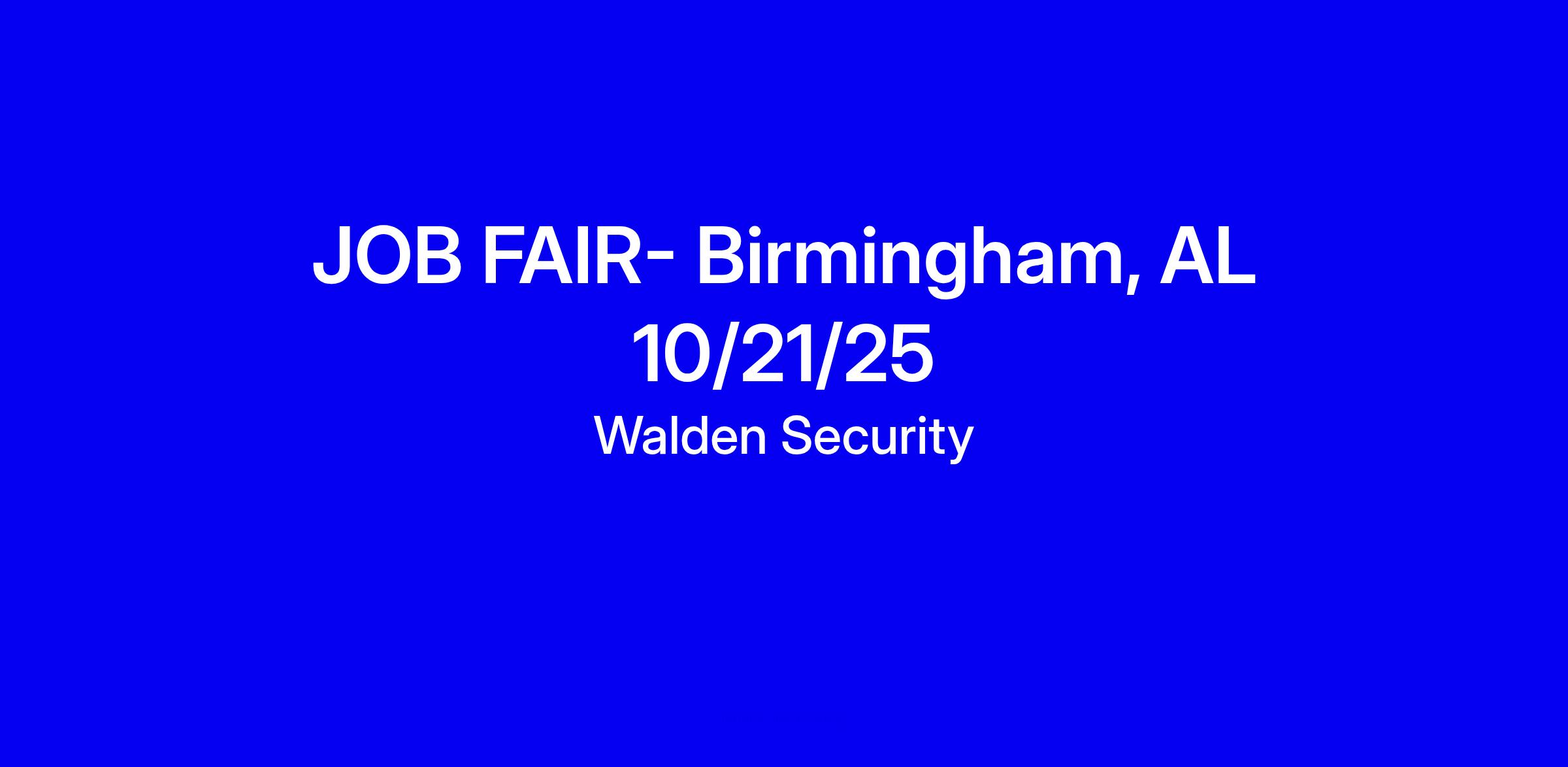 Walden Security is recruiting full-time, on-site Security Officers for a Birmingham career fair on 10/21/25, with same-day offers after interviews by the hiring team. Attend the Birmingham Career Center, 3216 4th Ave S, Birmingham AL 35222, 12:30 PM to 3:00 PM CST. The role protects client properties from fire, vandalism and illegal entry across industries, with pay between $17 and $23 per hour and a benefits package including training toward certification, tuition reimbursement, PTO, health options, 401k. Bring your HS diploma or GED, 18+, pass background and drug screening, guard license copy, I-9 documents, and DD214 if veteran. Dress professionally, bring documents, and highlight security experience and flexibility for shifts.