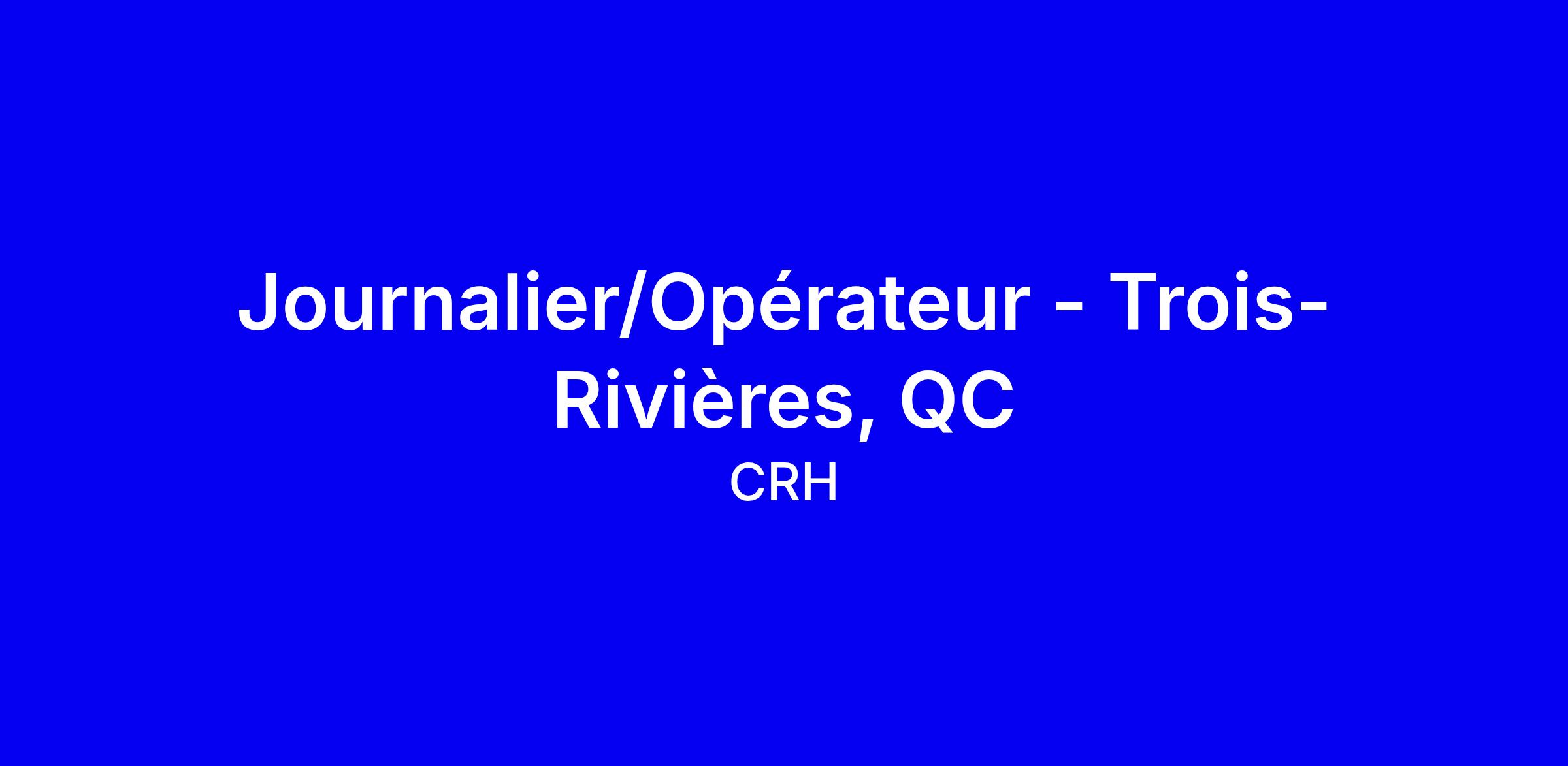 Nous sommes présentement à la recherche de Journaliers/Opérateurs pour joindre notre équipe à notre usine de Trois-Rivières. Les candidats recherchés doivent être disponibles à travailler à temps plein sur des quarts de travail en rotation (jour et soir), selon la convention collective. Ils doivent également pouvoir assumer deux rôles au besoin, soit journaliers et/ou d'opérateur.