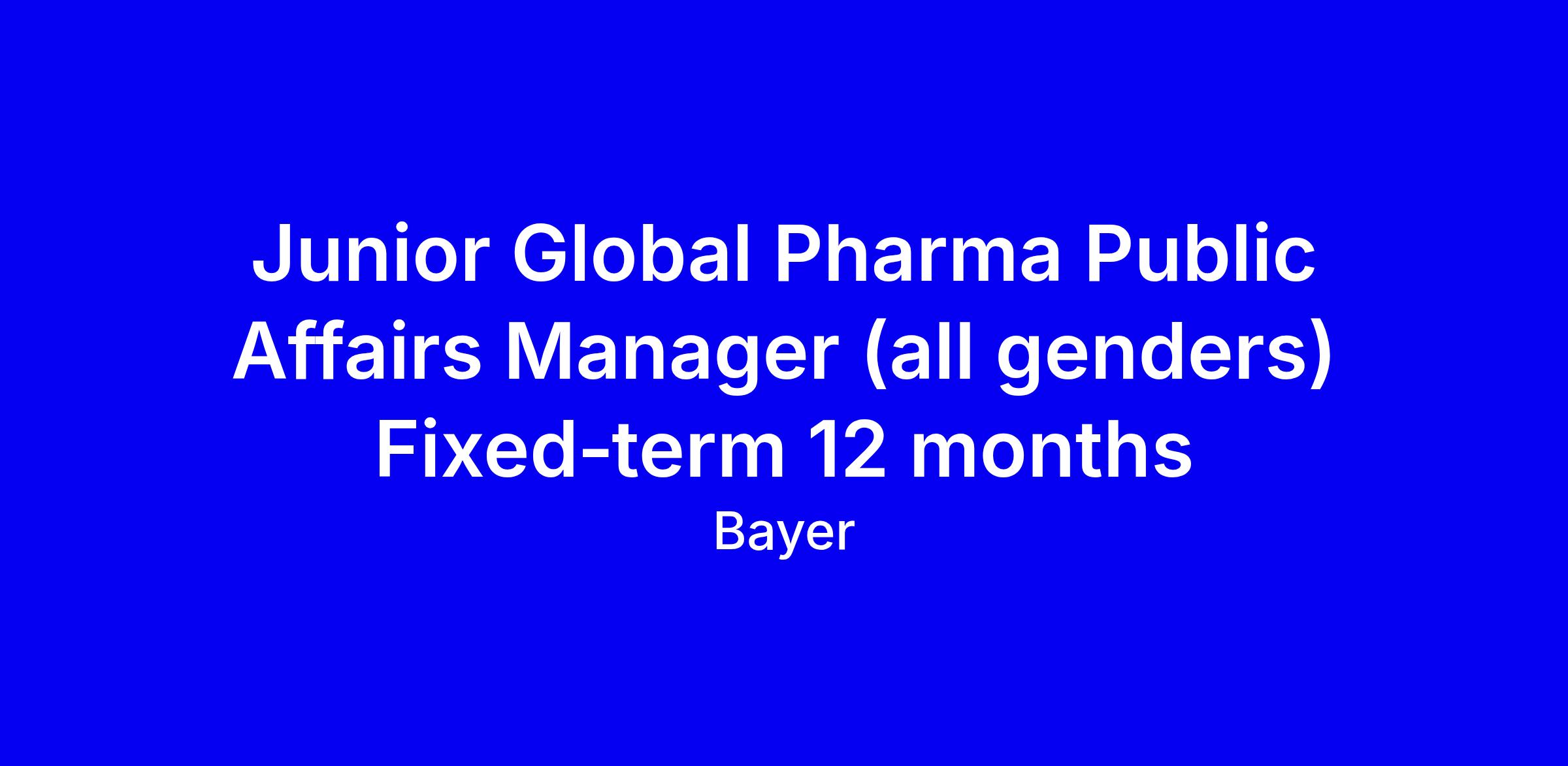 Junior Global Pharma Public Affairs Manager (all genders) Fixed‑term 12 months