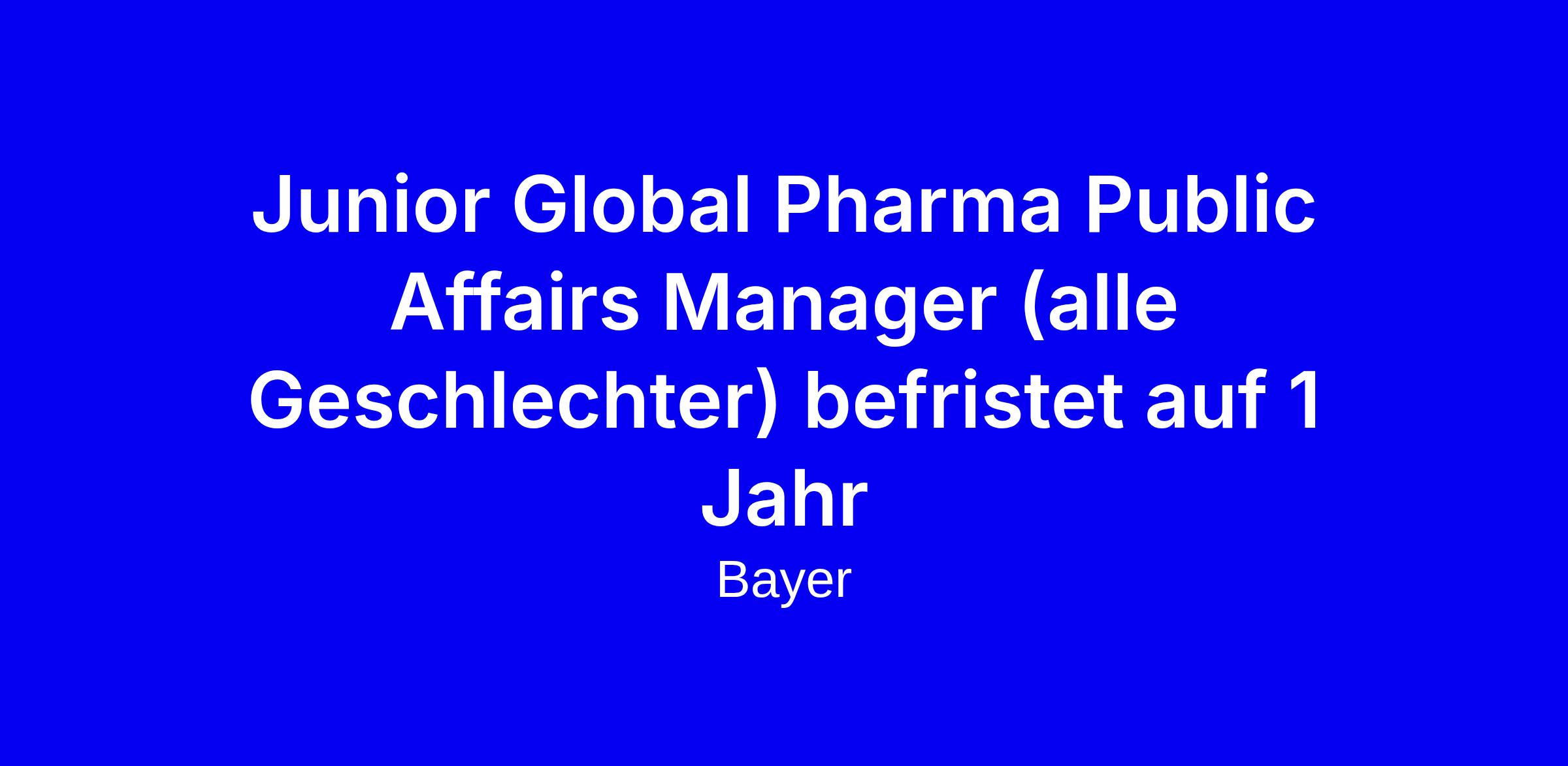 Junior Global Pharma Public Affairs Manager (alle Geschlechter) befristet auf 1 Jahr