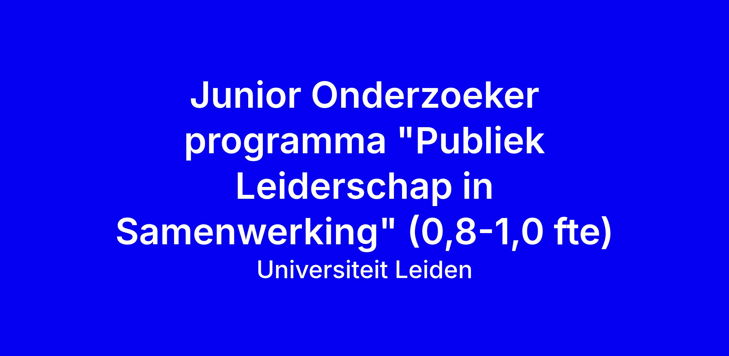Universiteit Leiden zoekt een Junior Onderzoeker voor het programma Publiek Leiderschap in Samenwerking, 0,8-1,0 fte. Je combineert onderzoekswerk met praktijkverbinding door projectmanagement te ondersteunen, kwalitatief en kwantitatief onderzoek uit te voeren, datamanagement te verzorgen en bij te dragen aan publicaties en bijeenkomsten. Vereisten: een research master in bestuurskunde of aanverwant, aantoonbare onderzoekservaring, affiniteit met publiek leiderschap en sterke interdisciplinaire samenwerkings- en communicatieve vaardigheden in NL en EN. Solliciteren tot 23 februari; eerste gesprekken week van 2 maart; start circa 1 mei. Tips: pas CV en motivatie aan op de onderzoeksagenda, benadruk samenwerking met publieke partners, relevante methoden en eventuele publicaties, en laat zien hoe je praktijk aan wetenschap koppelt.