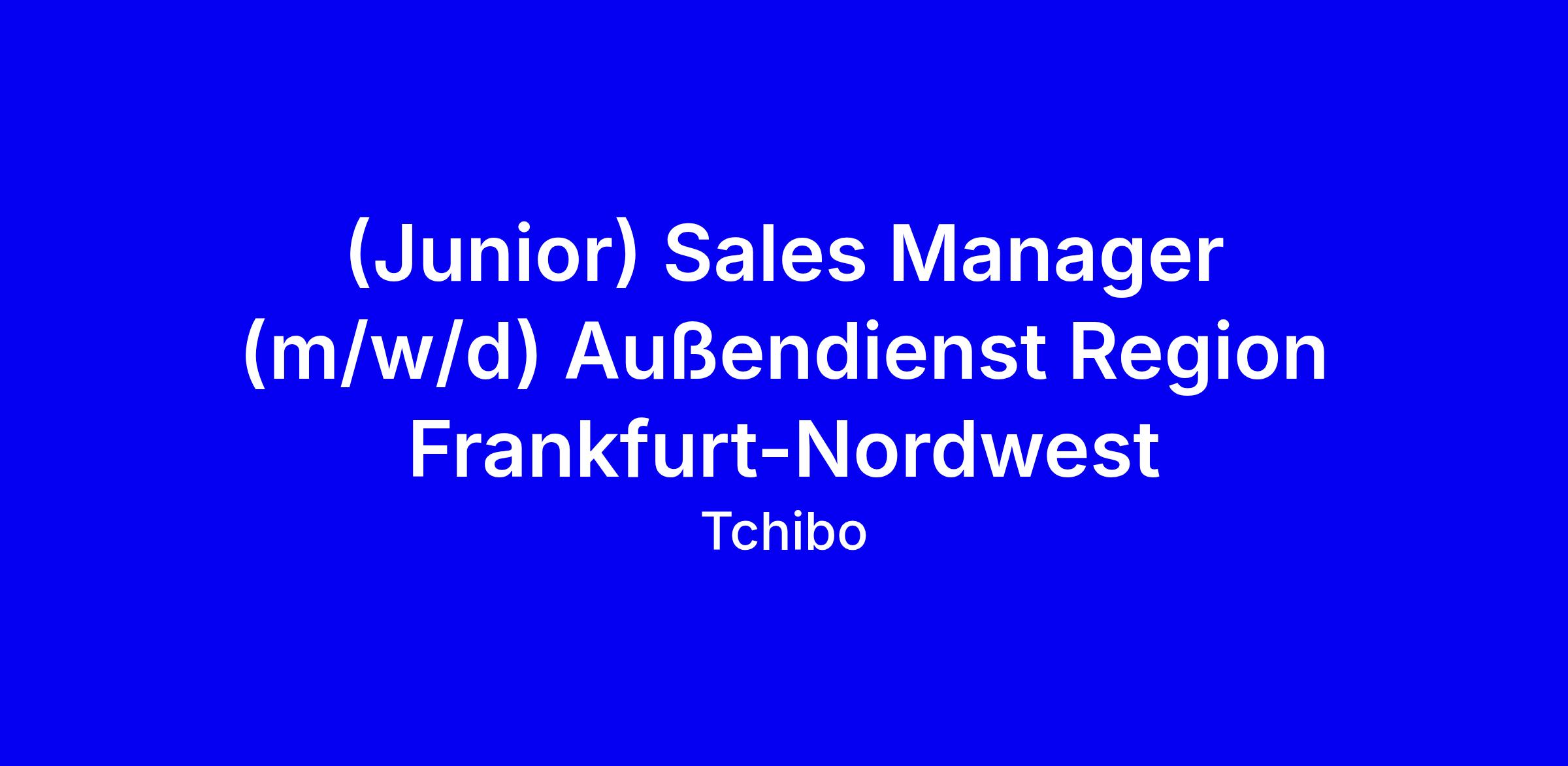 - Die Position des (Junior) Sales Managers (m/w/d) stellt den Startpunkt für eine generalistische Vertriebskarriere bei Tchibo dar, um junge Führungsnachwuchstalente zu fördern und zu entwickeln. Perspektivisch ist eine Entwicklung entweder als Führungskraft im Außendienst oder auf eine Innendienst Position in der Hamburger Firmenzentrale möglich.