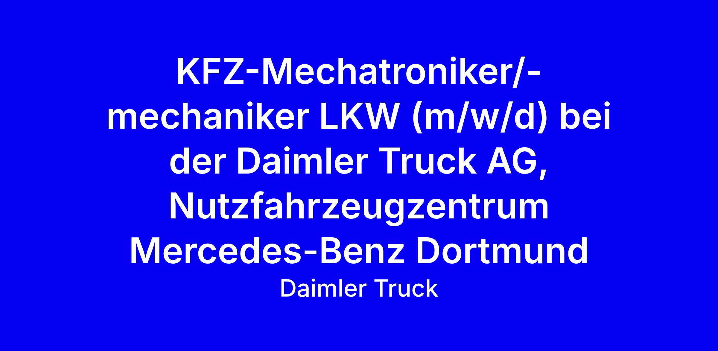 Diese Vollzeitstelle als KFZ-Mechatroniker/-mechaniker LKW bei Daimler Truck im Nutzfahrzeugzentrum Mercedes-Benz Dortmund bietet Wartungs- und Ölservice an modernen Mercedes-Benz LKW, Reparaturen und Instandsetzung sowie Prüfungen sicherheitsrelevanter Systeme in einem engagierten Team. Du arbeitest selbstständig, verantwortungsbewusst und kundenorientiert; idealerweise bringst du Erfahrung im Nutzfahrzeugbereich mit. Wir bieten ein attraktives Vergütungspaket, betriebliche Altersversorgung, Gesundheitsangebote und individuelle Weiterentwicklung durch unsere Learning Academy sowie kostenlosen Zugang zu LinkedIn Learning. Die Stelle ist 36,50-Stunden-Woche, langfristig angelegt. Bewirb dich online mit Unterlagen; wir schätzen Motivation genauso wie Erfahrung; Wir fördern Vielfalt und Chancengleichheit und freuen uns über Bewerbungen aus allen Kulturen. Fragen an die Schwerbehindertenvertretung unter [email protected].