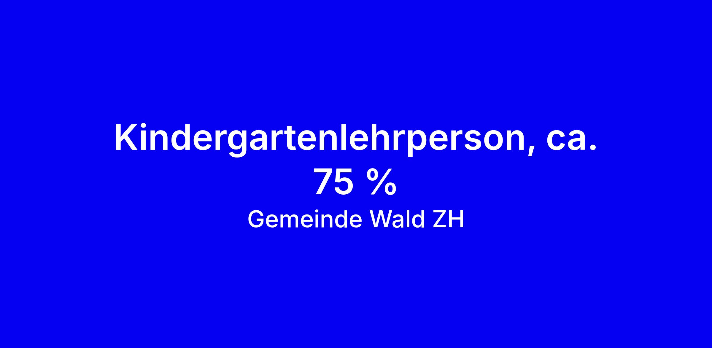 Die ausgeschriebene Position Kindergartenlehrperson ca. 75 % an der Schule AW Ried der Gemeinde Wald ZH bietet eine enge, kollegiale Arbeitsumgebung in überschaubaren Strukturen mit zwei Kindergartengruppen, vier altersgemischten Klassen und rund 1’200 Schülerinnen und Schülern an fünf Standorten; Start ist der 1. August 2026, ca. 20 Wochenlektionen. Wichtig sind Freude an Teamteaching, konstruktiver Umgang mit Verschiedenheit, Offenheit für gemeinsam verantwortete Förderung und aktive Mitgestaltung der Schulgemeinschaft; EDK anerkanntes Lehrdiplom ist erforderlich. Die Schule bietet ein kleines, unterstützendes Team, Raum für Ideen und eine wertschätzende Schulkultur. Jetzt online bewerben, Lebenslauf, Zeugnisse und Diplome hochladen und in einem Motivationsschreiben erzählen, was dich antreibt. Fragen beantwortet Caroline Marti unter 055 266 12 18 oder 079 743 48 63 oder [email protected].