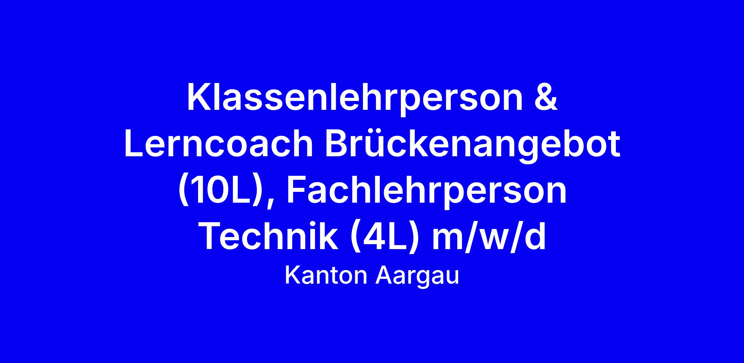 Klassenlehrperson & Lerncoach Brückenangebot (10L), Fachlehrperson Technik (4L) m/w/d