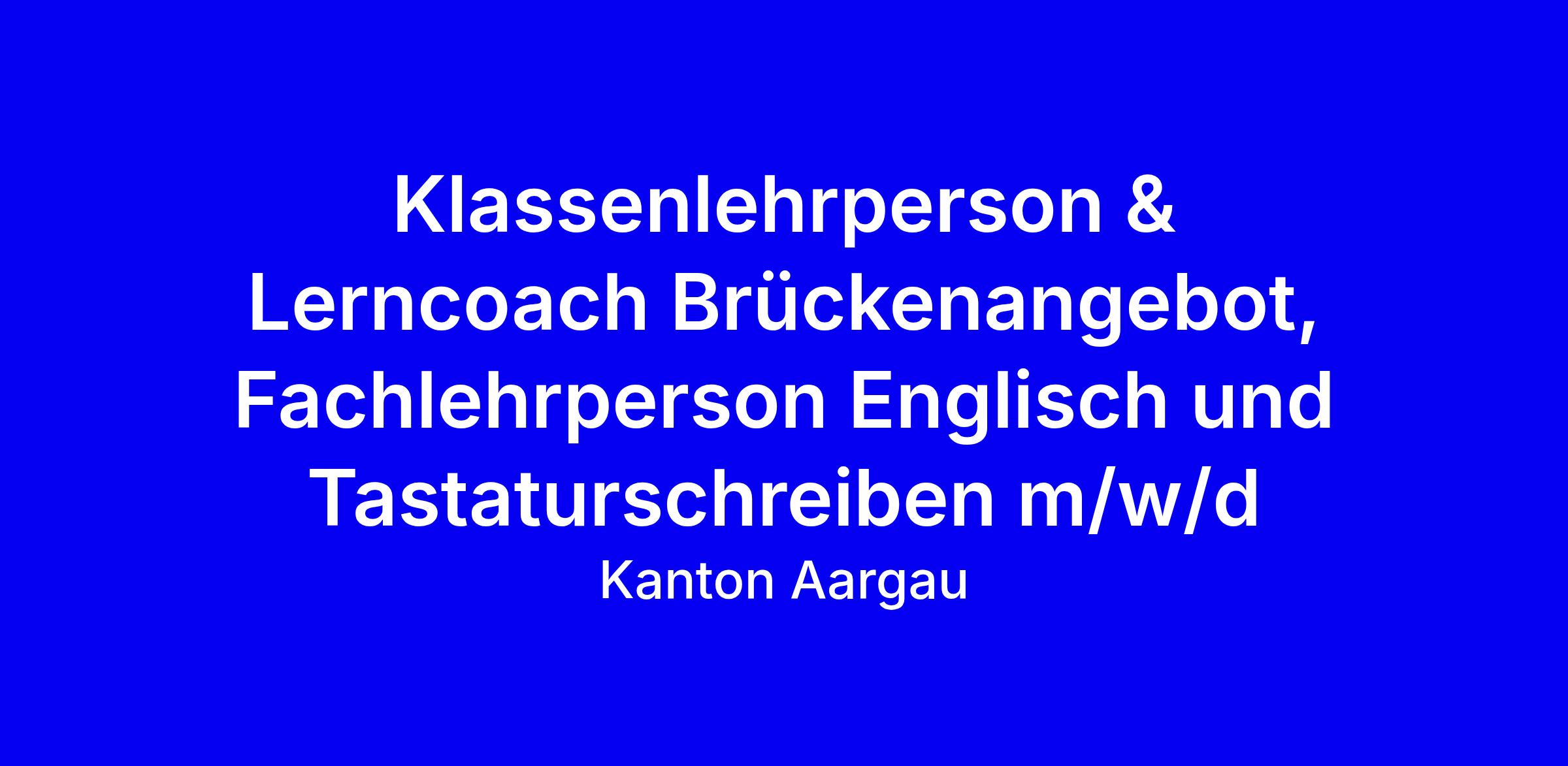 Klassenlehrperson & Lerncoach Brückenangebot, Fachlehrperson Englisch und Tastaturschreiben m/w/d