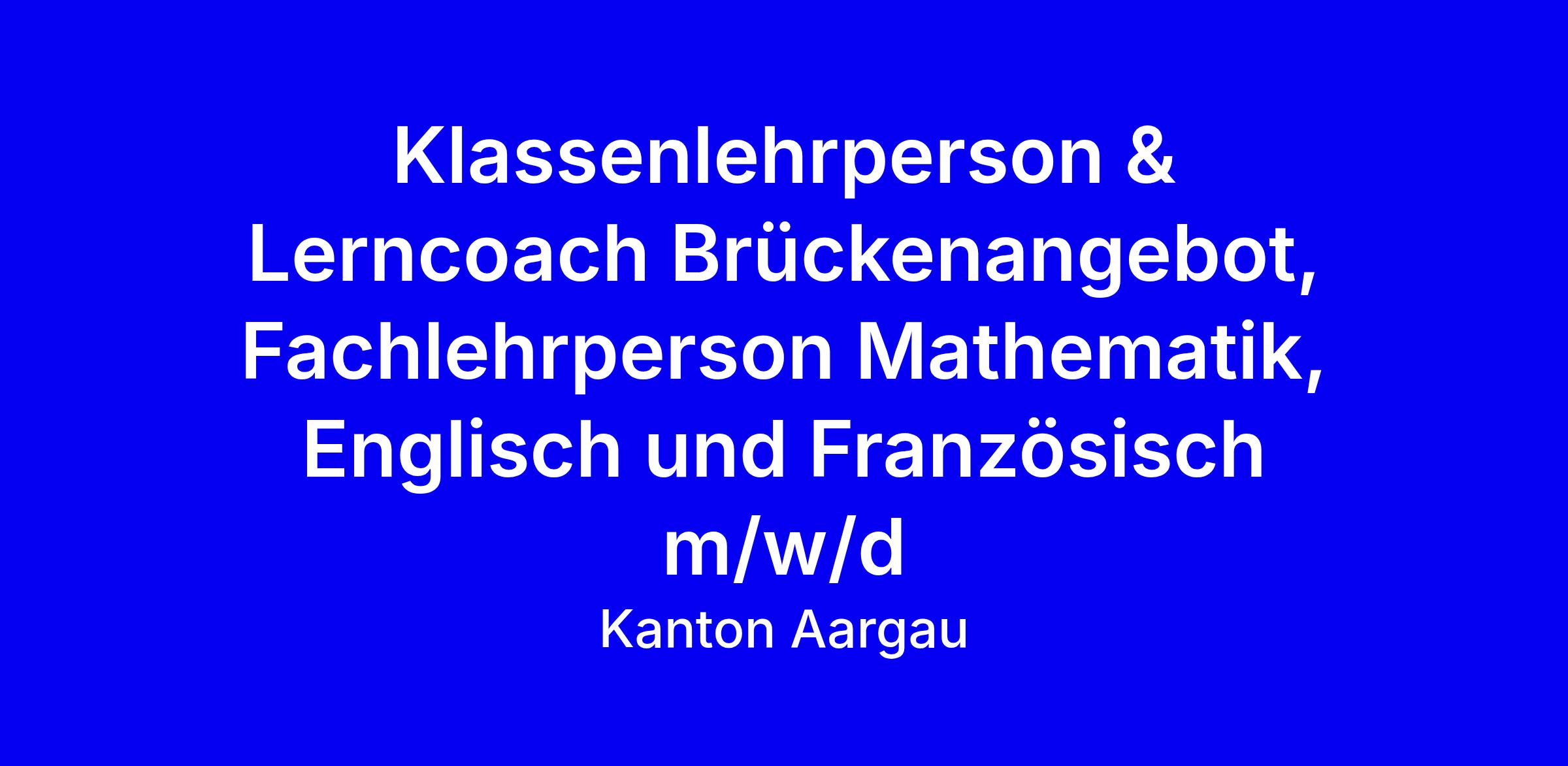 Klassenlehrperson & Lerncoach Brückenangebot, Fachlehrperson Mathematik, Englisch und Französisch m/w/d