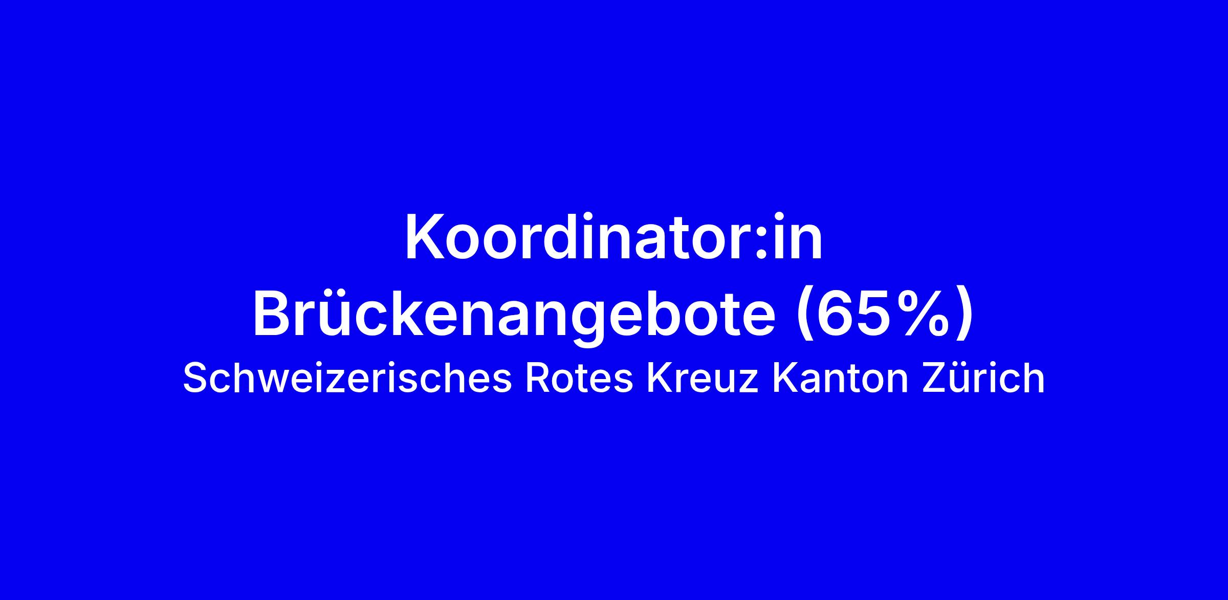 Das Schweizerische Rote Kreuz Kanton Zürich sucht ab 1. Juni 2026 oder nach Vereinbarung eine empathische und engagierte Koordinator:in Brückenangebote (65%). Die Stelle im Bildungszentrum Winterthur umfasst das Durchführen von Aufnahmegesprächen, die Akquise und Vermittlung von Praktikumsplätzen im Gesundheits- und Sozialbereich, sowie administrative Aufgaben inklusive Berichterstattung und Statistik (ca. 50 Prozent) und enge Zusammenarbeit im Zweierteam sowie Coaching von bis zwei Teilnehmenden im Programm CHECK-IN SRK. Voraussetzungen sind ein tertiärer Abschluss im Sozial- oder Gesundheitsbereich mit kaufmännischem Hintergrund sowie Coaching-Erfahrung, hervorragende Administrative Skills, Office 365, ideal Moodle/PerformX, und Erfahrung in Beratung junger Menschen. Bewerben Sie sich online mit Foto, bereiten Sie anschauliche Beispiele zu Reporting, ALV-Kenntnisse und Netzwerken mit RAV vor, und richten Sie Fragen an Susanna Lichtensteiger.