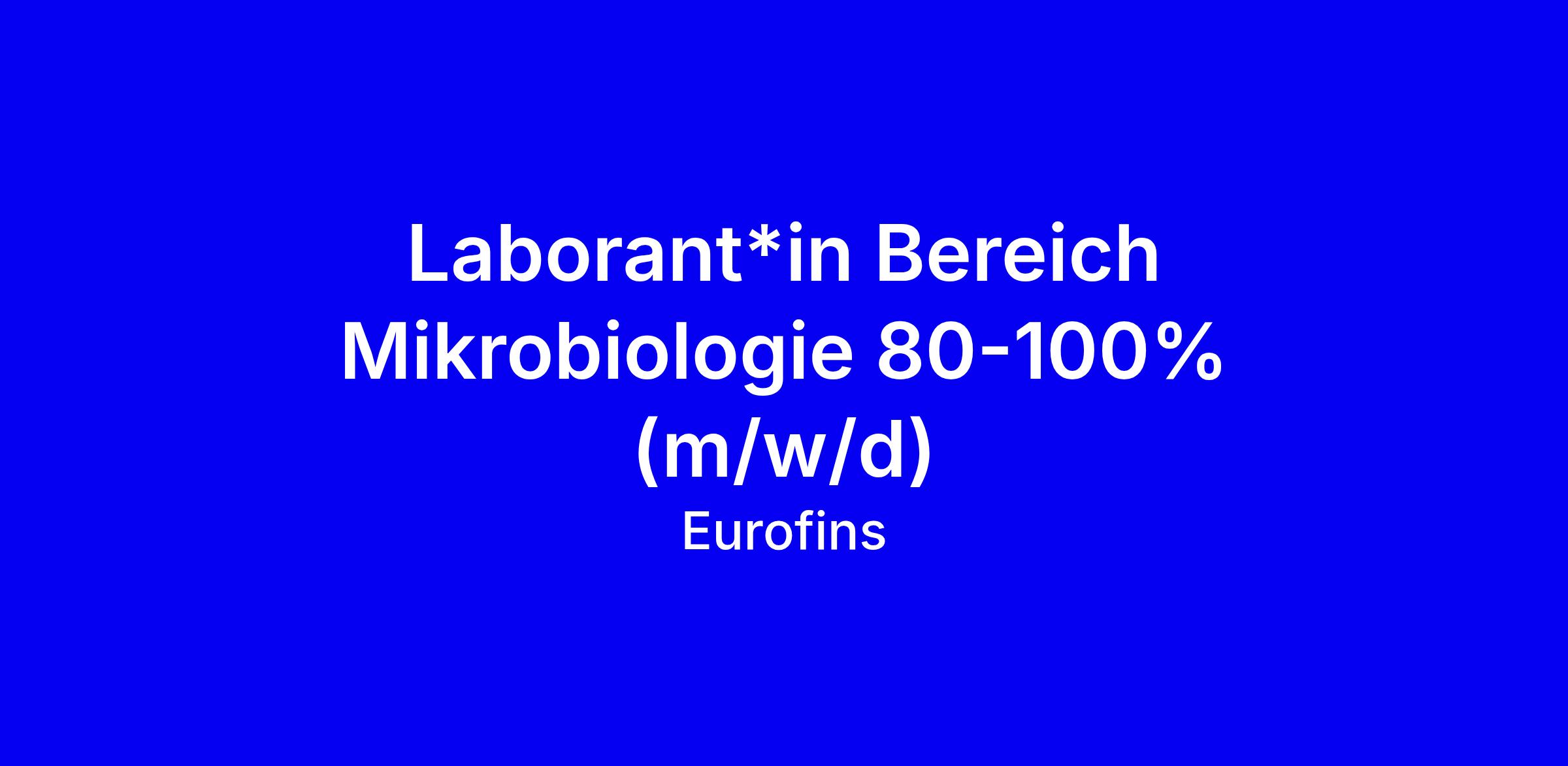 Zur Unterstützung unseres Teams suchen wir Dich per sofort oder nach Vereinbarung als Laborant*in Bereich Mikrobiologie 80-100% (m/w/d)