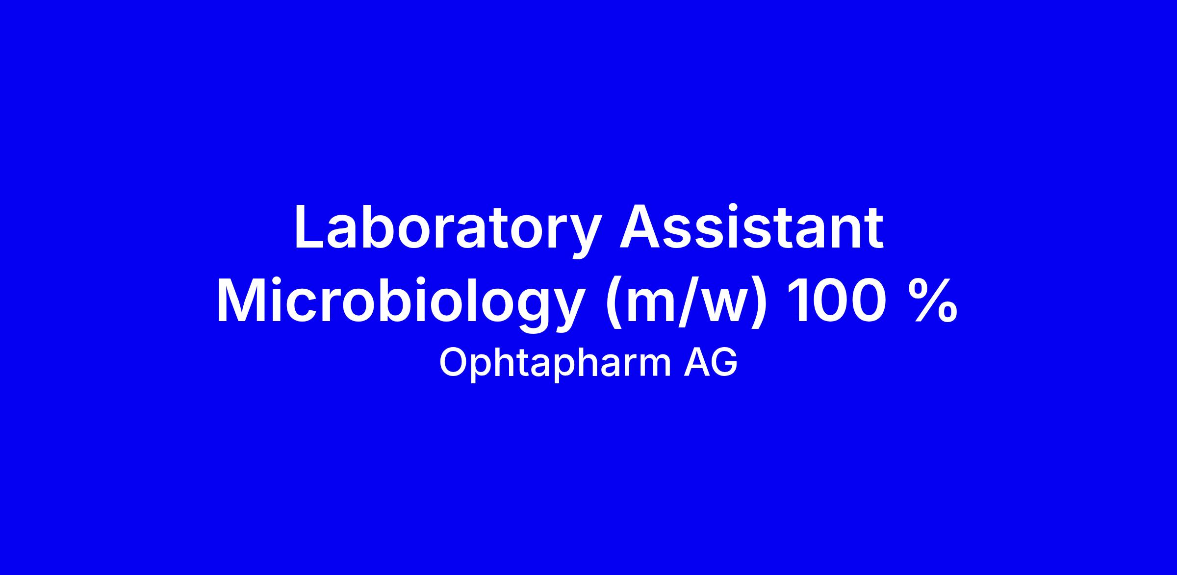 Ophtapharm AG sucht am Standort Hettlingen eine/n Laboratory Assistant Microbiology (m/w) 100 %. Sie führen eigenständig mikrobiologische Routineprüfungen nach GMP-Vorgaben durch, einschließlich Sterilitäts- und Keimzahlprüfungen, Endotoxinen, Umgebungsmonitoring, Herstellung von Nährmedien, Organisation von Servicelabor-Aufträgen, fachliche Unterstützung der Validierung, gelegentliche Mediafills-Auswertungen und SOP-Bearbeitung; gelegentliche Samstagseinsätze sind möglich. Anforderungen: abgeschlossene Berufslehre als Biologielaborant/in, BTA oder vergleichbar, relevante QC/Mikrobiologie-Erfahrung, GMP-Kenntnisse von Vorteil, sehr gutes Deutsch (mind. B2), gute Englischkenntnisse, Team- und Organisationsstärke sowie eine verantwortungsbewusste, genaue Arbeitsweise. Vorteile: dynamisches Umfeld, Du-Kultur, Gratis Parkplätze und gute ÖV-Anbindung. Bewerbungen direkt an Ophtapharm; Dossiers über Vermittlungsbüros werden nicht berücksichtigt; bei Fragen HR Hettlingen, Tel: +41 52 304 13 23.