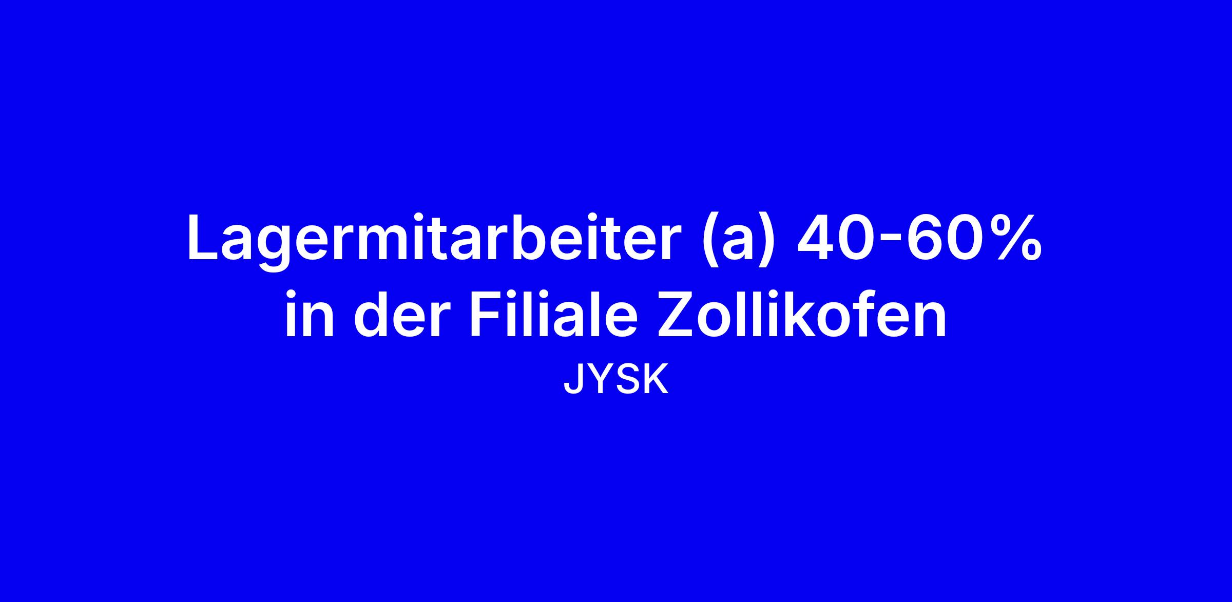 Die Position sucht Lagermitarbeiter (a) 40-60% in der JYSK Filiale Zollikofen, der neben dem Verkauf auch das Lager organisiert, Aufgaben koordiniert und das Team vorantreibt. Erwartet wird eine strukturierte, zielorientierte Arbeitsweise in einem dynamischen Umfeld, Freude an körperlicher Arbeit und eine Hands-On-Mentalität. Zu den Aufgaben gehören Lagerpflege, Warenplatzierung, Schulung von Kolleginnen und Kollegen für eine sichere Lagerumgebung sowie die Verantwortung für ein attraktives Warenbild und exzellenten Kundenservice. Angeboten werden Entwicklungschancen, Mentoring, interne Wettbewerbe, überdurchschnittlicher Umsatzbonus, 20% Rabatt, gute Pensionskassenleistungen, 5 Wochen Ferien, die sich alle 5 Dienstjahre erhöhen, sowie weitere Vorteile wie Unfallversicherung und Jubiläumsgeschenke. Tipp: Betonen Sie Lagerkoordination, Teamführung, Flexibilität auch samstags und Kundenorientierung, verknüpfen Sie Ihre Bewerbung mit JYSK Werten wie Tradesman, Colleague und Corporate Spirit.