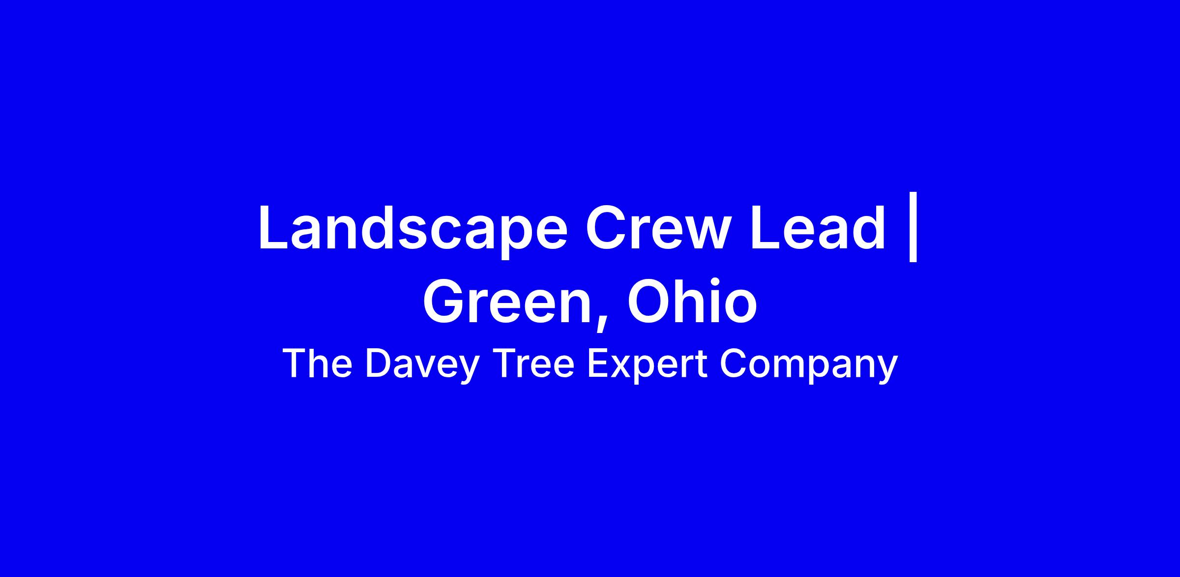 Davey Tree is currently seeking an experienced Landscape Crew Lead to join our team!!