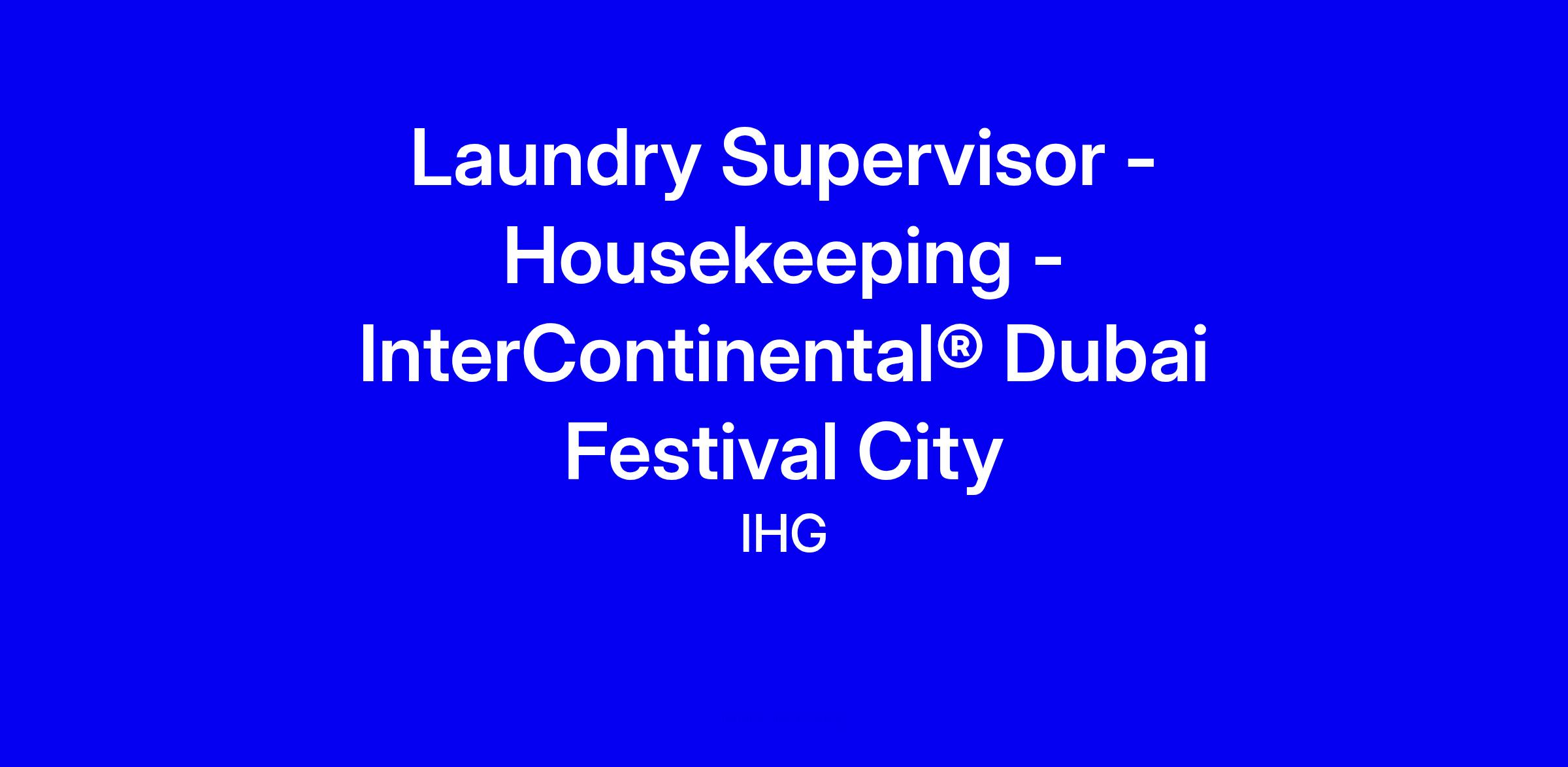 Do you see yourself as a Laundry Supervisor for InterContinental Hotel® Dubai Festival City?