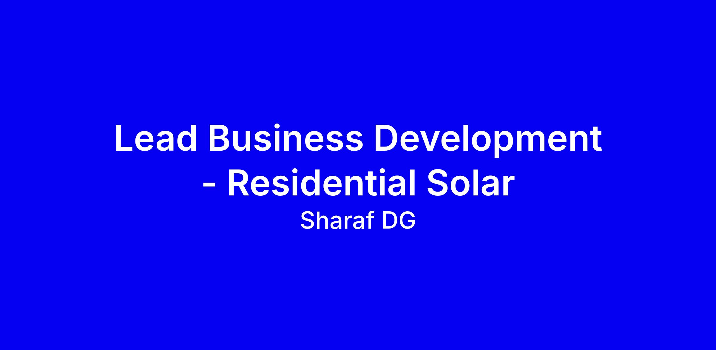 Sharaf DG is seeking a Lead Business Development for Residential Solar in Dubai to drive measurable growth through data driven sales leadership, revenue generation, and a stronger market presence. You will own the residential solar pipeline, meet monthly and quarterly targets, improve lead-to-conversion, and conduct site assessments and client consultations to accelerate decisions, while delivering competitive proposals and coordinating with marketing and operations to speed up installation. Requirements include a bachelor’s degree and 12+ years in BD or sales, preferably in solar, with a proven track record of meeting targets, strong CRM and forecasting skills, and cross functional collaboration. Apply with a CV that quantifies solar wins and Dubai market impact.