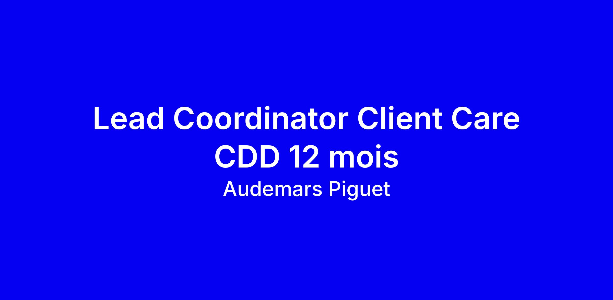 Le poste : Lead Coordinator Client Care CDD 12 mois basé à Tolochenaz