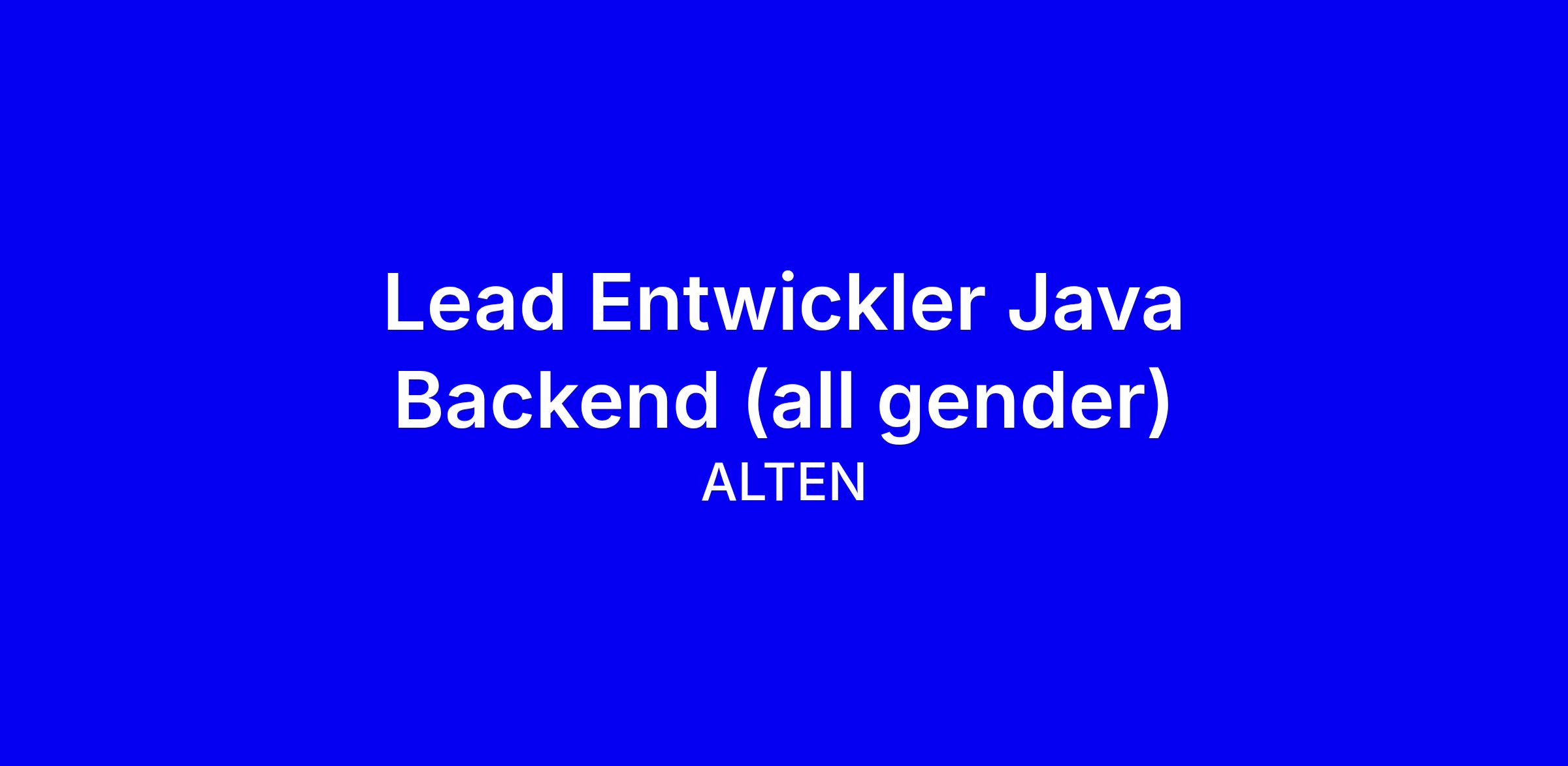 ALTEN sucht einen Lead Entwickler Java Backend (all gender) in Nürnberg, Vollzeit, onsite. Als einer der weltweit führenden Entwicklungsdienstleister gestalten Sie die Zukunft unserer Partner, die Karrieren unserer Mitarbeiter und gesellschaftliche Herausforderungen positiv. Sie verantworten Architektur, IT-Sicherheit, Qualitätsziele, Code-Standards, technische Schnittstellen, Versions- und Release-Management sowie aktuelle Dokumentation. Gesucht wird ein abgeschlossenes Informatikstudium oder eine vergleichbare Qualifikation, exzellente Java-Kenntnisse mit Quarkus und Domain-Driven Design, Erfahrung mit Container- und Cloud-Technologien, CI/CD sowie Event-Driven-Architekturen und DevOps. Sehr gute Deutsch- und Englischkenntnisse. Wir schätzen Vielfalt und bieten unbefristeten Vertrag, Talent Management, Work Life Balance, EGYM Wellpass, Dienstradleasing und IT Communities. Bewerben Sie sich online; Schwerbehinderte werden bei gleicher Eignung bevorzugt berücksichtigt; bei Fragen wenden Sie sich an Enis Duric.