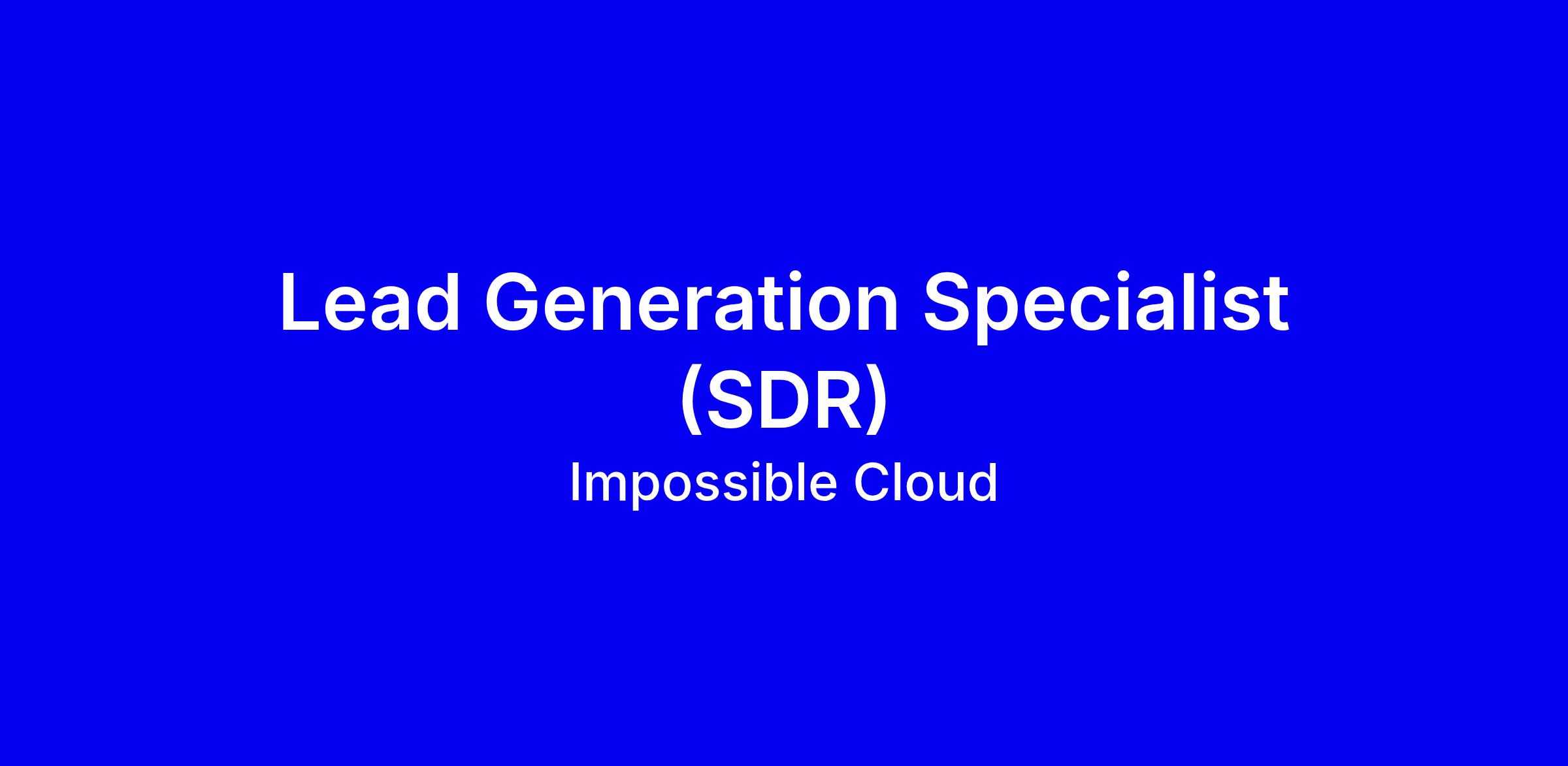 Please note: This is an ICN role being handled by the IC GmbH applicant tracking system.About UsAt Impossible Cloud Network (ICN) we’re building the world’s largest independent data center network for high-performance, enterprise-grade AI storage and compute. Founded by seasoned entrepreneurs who previously built a billion-euro tech company, we're on a mission to revolutionize the cloud industry. We enable our customers to achieve real data sovereignty as they retain full data control & custody with verifiable enterprise-grade privacy guarantees – all outside hyperscalers.The RoleAs a Lead Generation Specialist, your mission is simple: build the pipeline. You are the first point of contact between ICN and the world’s leading AI integrators and Service Providers. You won't be closing the deals; you will be the one finding the opportunities, making the cold calls, and setting the stage for our senior team to win.This is a high-volume, high-activity role. You will spend your day researching, dialing, and emailing to turn cold prospects into Sales Qualified Leads (SQLs).What You’ll Do- Create and curate a high-quality list of targetsOutbound sales (calls, emails, LinkedIn) to identify and engage senior decision-makers at MSPs and AI startups.- Qualify prospects to understand their GPU needs, budget, and timeline, ensuring only the best leads reach our senior team.- Rigorously maintain accurate records to ensure no lead is ever forgotten and follow-ups are perfectly timed.- Handover qualified leads to the team to close. Qualities for Success- You are motivated by activity metrics. You view a "No" as just one step closer to a "Yes."- You don’t need to be an engineer, but you must be able to explain the "Neocloud" value proposition - why GPUs and Sovereign Cloud matter for AI today.- You must be confident on the phone. You can navigate past gatekeepers and hold a professional conversation with a CTO.- You manage your outbound sequences with discipline.0–2 years of experience in Sales, SDR, or Telemarketing. - We value attitude and grit over years on a resume.- Native-level or professional-level English is a must. Why this role is great for you- This is the "boot camp" for tech sales. Successful SDRs at ICN can move into Account Executive or BDM roles within 12–18 months.- You will work directly with seasoned entrepreneurs who have built billion-euro companies.- In a startup of our size, every meeting you book has a direct impact on our 2026 roadmap.Our CultureWe believe the best ideas are forged in person. That's why we value regular, in-person collaboration and open communication at our Zug, Switzerland headquarters. If you're an innovative thinker with a passion for success in decentralized technology and the cloud industry, we want you on our team.