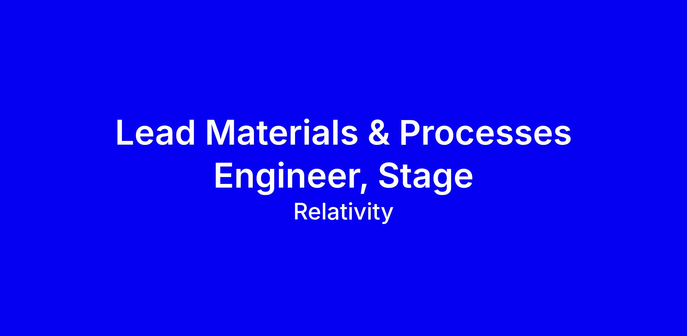 Relativity Space is hiring a Lead Stage Materials & Processes Engineer in Long Beach, onsite, to own the Stage M&P development, design, manufacturing and reuse of Terran R primary structures, mechanisms and fluid systems. You will set team expectations, coordinate with designers, METLab, weld, NDE, manufacturing, quality and supply chain, drive technical direction and risk mitigation, and lead root-cause actions to keep the program on track while supporting annual planning. Requirements include a bachelor in materials science or engineering, 4+ years of M&P experience with qualification, failure analysis, experimental design and allowables development, and a proven record of inclusive, action oriented leadership. Nice to have lifecycle experience across stages and broad M&P disciplines. Compensation includes salary and equity, PTO, learning stipend, and more; apply with a concise narrative of impact, cross team collaboration, and concrete examples of delivering under schedule pressure.