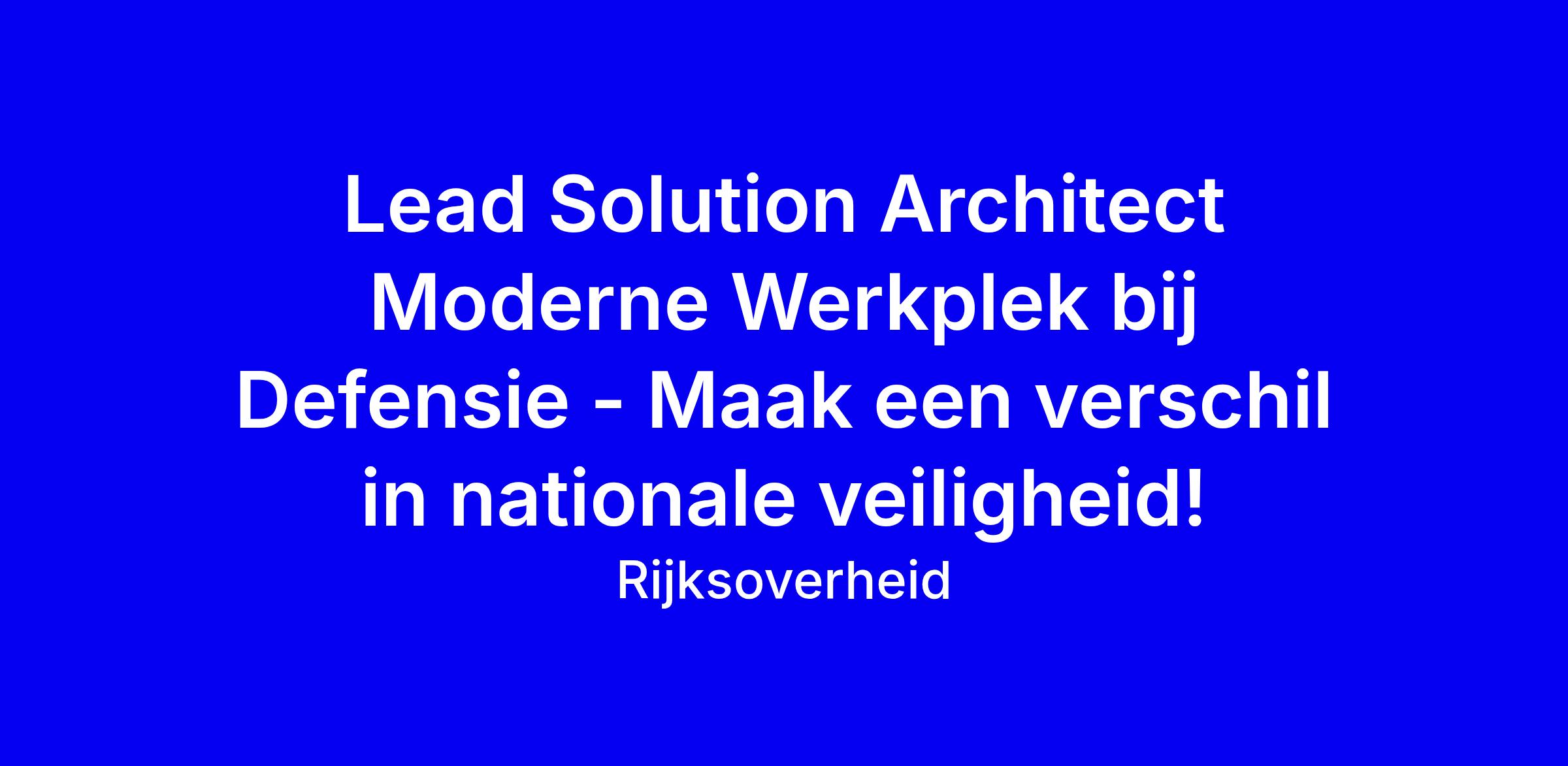 De werkplek van Defensie is continu in beweging en wordt ingezet binnen de verschillende statische en ontplooide domeinen van Defensie. De werkplek van Defensie dient veilig, wendbaar, robuust en altijd beschikbaar te zijn voor de omstandigheid waar het in gebruik is. Wil jij een sleutelrol spelen om de werkplek van Defensie modern en fit to the job te houden? Wil je bijdragen aan het beschermen van de digitale toegang binnen één van de meest essentiële organisaties van Nederland voor (inter)nationale veiligheid? Als Lead Solution Architect op het Moderne Werkplek domein krijg je de kans om krijg om jouw kennis en ervaring in te zetten voor de beste werkplekken voor Defensie die een directe impact hebben op de veiligheid van ons land.