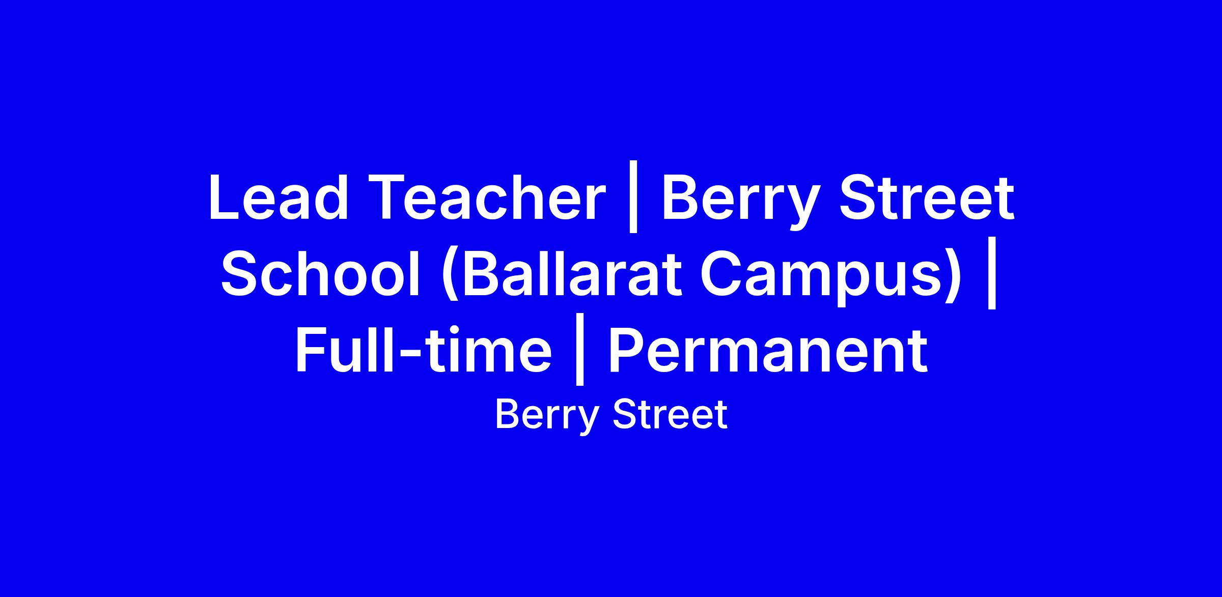 Berry Street School Ballarat is seeking a Lead Teacher to create safe, inclusive, trauma-informed learning communities where every student feels valued and capable, delivering individualised programs and applying the Berry Street Education Model across Years 7 to 12. This full-time, permanent role offers $125K plus Super, salary packaging, and strong professional growth supports, including coaching and reflective supervision, 10 weeks parental leave, and wellbeing programs. To stand out, demonstrate registration, deep trauma-informed practice, relationship-led learning, and leadership in curriculum planning, assessment, and family partnership. Show measurable student growth and resilience as well as collaboration with multidisciplinary teams. Apply by 22 February 2026; for details contact Shaun or Bonnie.