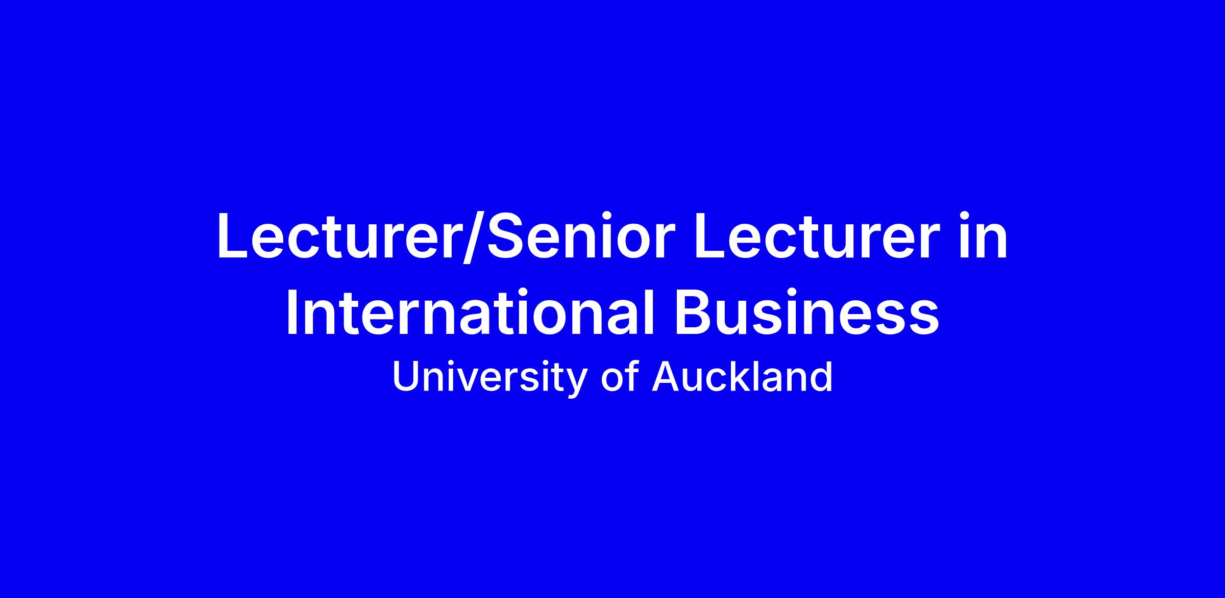 University of Auckland seeks a full-time permanent Lecturer or Senior Lecturer in International Business. The role emphasizes SME internationalisation, digitalisation and scaling, with teaching across undergraduate and postgraduate courses and a focus on publishing in top IB journals. At Lecturer level, potential to publish in reputable outlets; at Senior Lecturer, an established track record and portfolio of high impact work plus supervision and external funding experience. A PhD in IB or related field is required, with the ability to teach across IB and related disciplines using innovative pedagogy aligned to TeachWell. Remuneration NZD 99,788 to 158,904. Apply online by 17 March 2026; include cover letter, CV, teaching philosophy and evaluations, and a research plan. Confidential chats with Lisa Callagher welcome; questions only, not email applications. Equity and Treaty commitments observed.