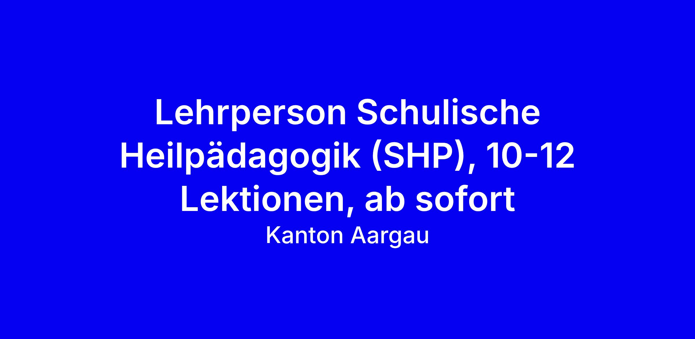 Wir suchen ab sofort eine schulische Heilpädagogin bzw. einen schulischen Heilpädagogen SHP für unsere kleine familiäre Primarschule in Killwangen im Limmattal. Die Stelle umfasst 10 bis 12 Lektionen pro Woche, 35 bis 45 Prozent Pensum, befristet bis 31.07.2026 oder unbefristet ab 2026/27. Optionale DaZ-Pensum von sechs Lektionen möglich. Erwartet wird ein Masterabschluss in Schulischer Heilpädagogik oder ein entsprechendes Primarschuldiplom, Freude an der Arbeit mit Kindern von Kindergarten bis zur 6. Klasse, Teamfähigkeit und Eigeninitiative. Wir bieten eine unterstützende Schulleitung, Coaching, ein offenes Team, moderne Räume und viel Gestaltungsspielraum. Bewerbung per E-Mail an [email protected]; Fragen an Tel 056 416 97 01.