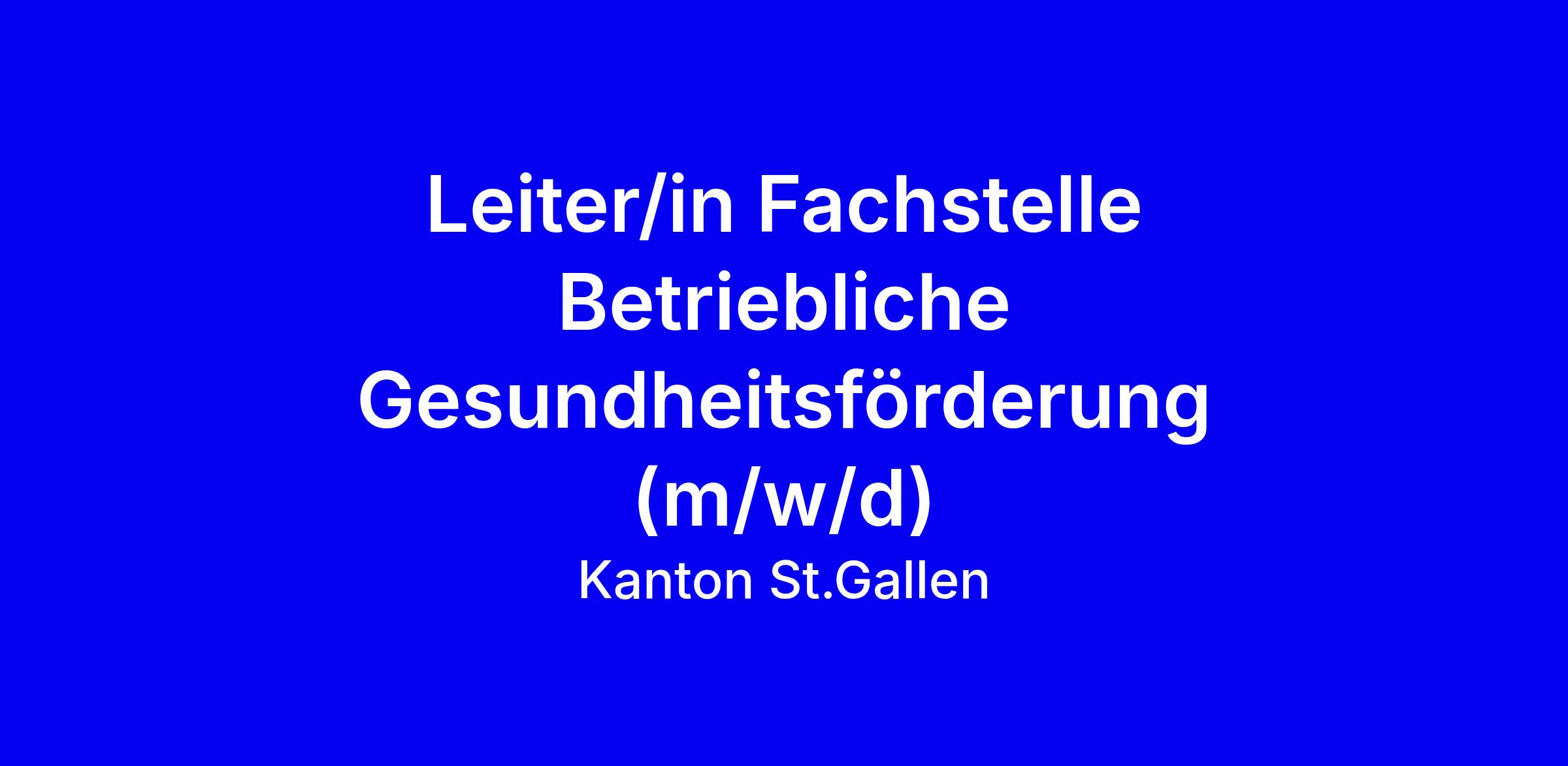Die Stelle führt die Fachstelle Betriebliche Gesundheitsförderung im Amt für Gesundheitsvorsorge des Kantons St. Gallen, 80 Prozent Pensum, Standort St. Gallen, Start 1. Juni 2026 oder nach Vereinbarung. Zu den Aufgaben gehören die Leitung der Geschäftsstelle des Ostschweizer Forums Betriebliches Gesundheitsmanagement, Initiierung von Gesundheitsförderungs- und Präventionsmaßnahmen, Organisation von Vorstandsgeschäften und Fachtagungen, Budgetverantwortung, Aufbau von Netzwerken und zielgruppengerechte Kommunikation. Gesucht wird eine Person mit Hochschulabschluss idealerweise in BGF oder Organisationsentwicklung, mehrjähriger Praxis in BGF oder Public Health, Erfahrung in einer Vereinsgeschäftsstelle und im Projektmanagement, sowie sicherer Kommunikationskompetenz. Wir bieten eine eigenverantwortliche Tätigkeit, kollegiales Umfeld, gute Einarbeitung, flexible Arbeitszeiten und zentrale Lage in St. Gallen. Bewerbungstipps: verknüpfen Sie Leadership, Budget, Eventplanung und Netzwerke mit konkreten Beispielen, passen Sie Unterlagen an die Fachstelle an und wenden Sie sich bei Fragen an Stefan Christen (058 229 87 61).
