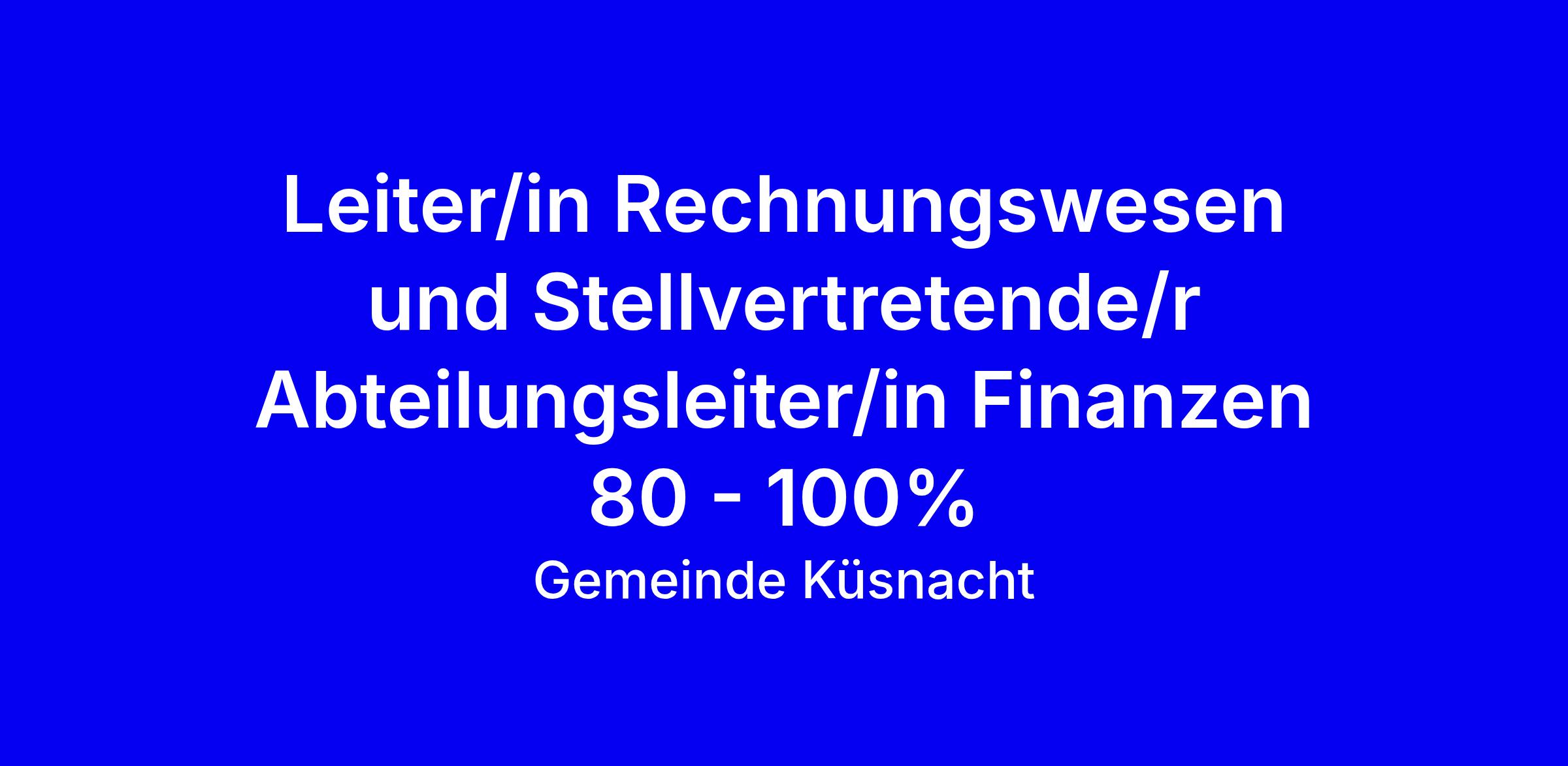 Leiter/in Rechnungswesen und Stellvertretende/r Abteilungsleiter/in Finanzen 80 - 100%
